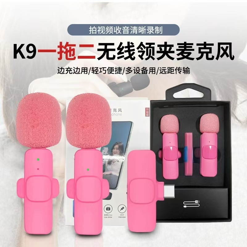 K9领夹麦克风直播户外一拖二音响跨境新款粉色少女粉小话筒收音