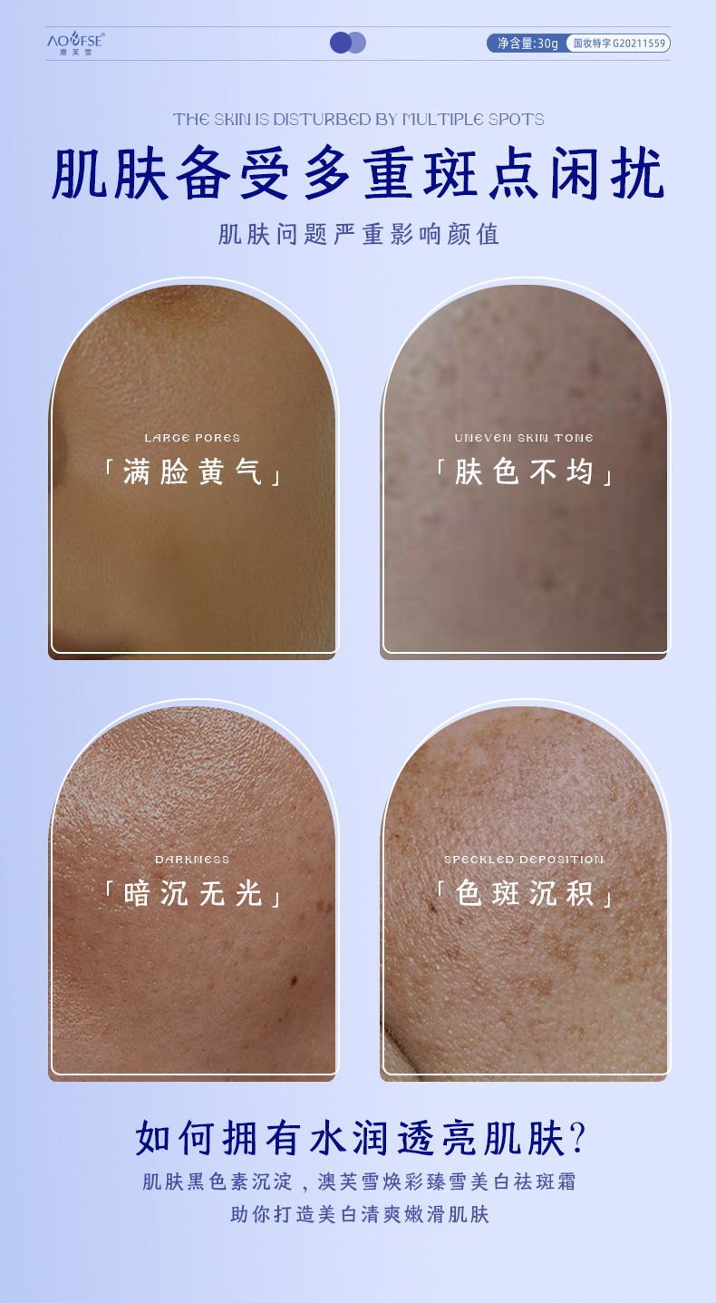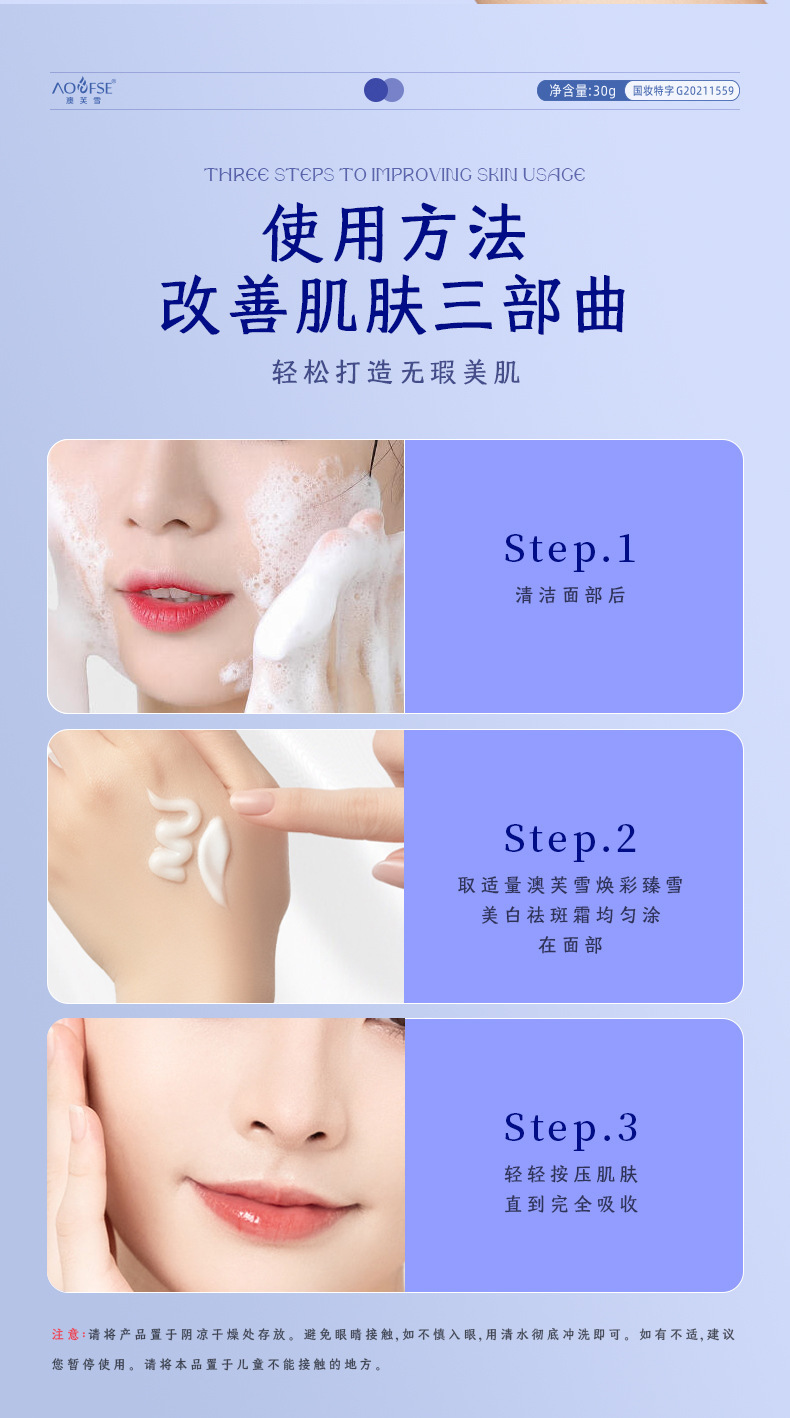 澳芙雪377熙彩臻雪美白去斑クリーム潤い保湿淡斑若肌美白クリーム30g