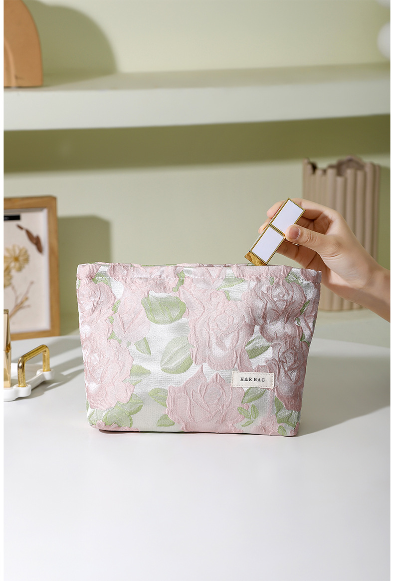 新商品の小清新ジャカード花化粧袋大容量旅行スキンケア品収納バッグ