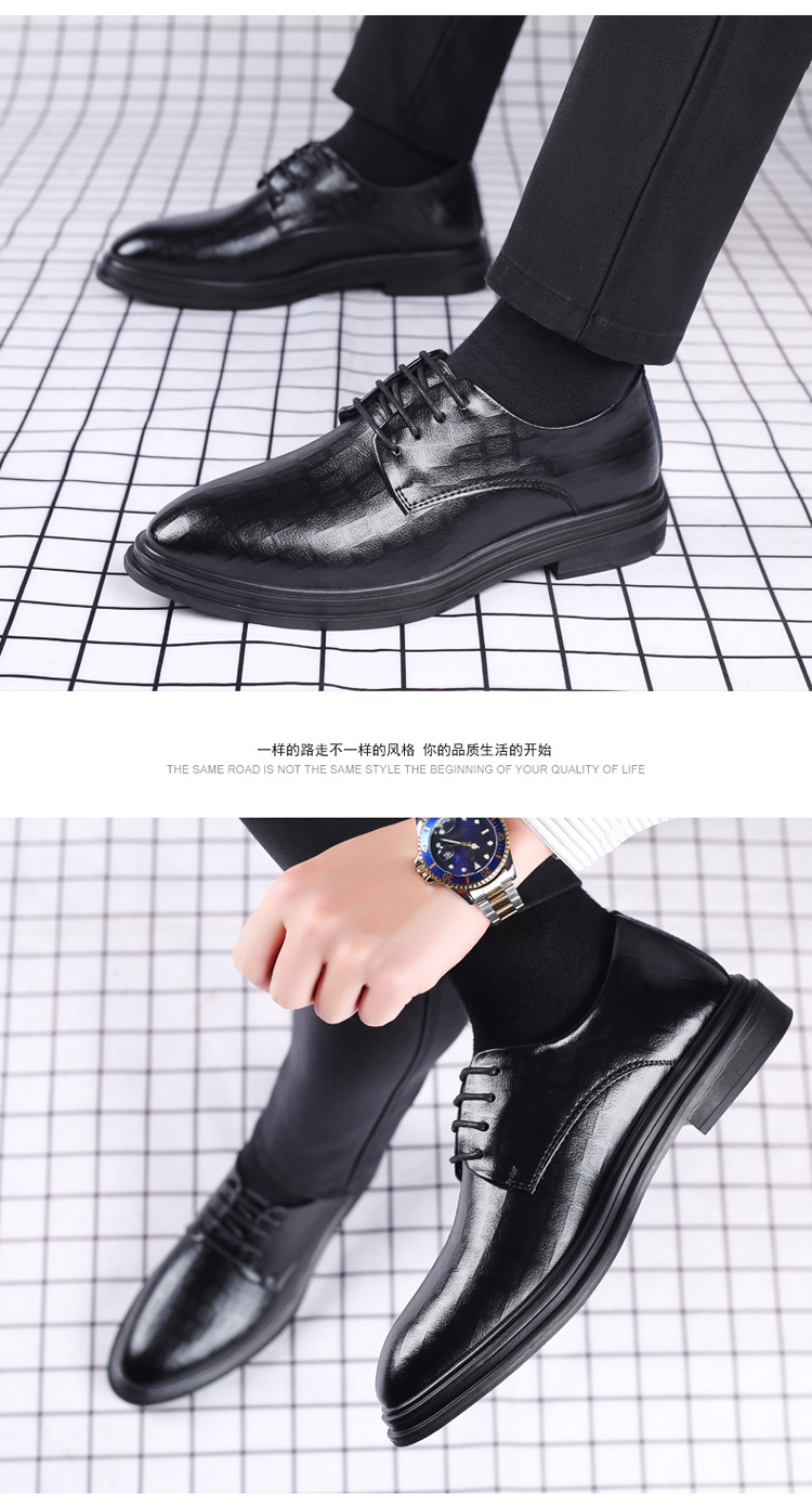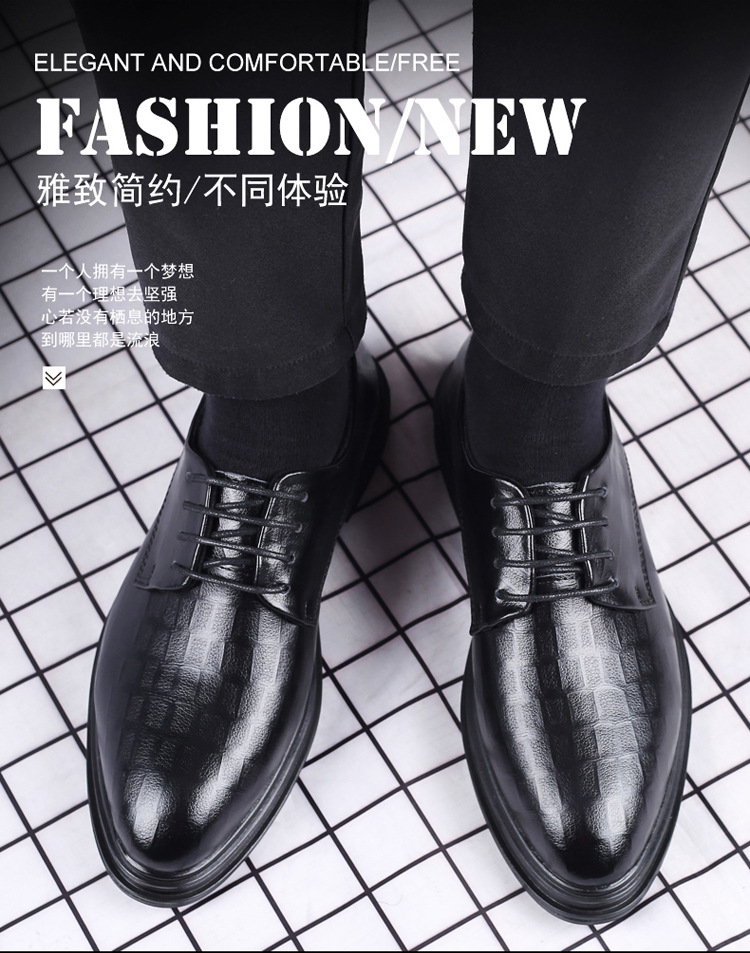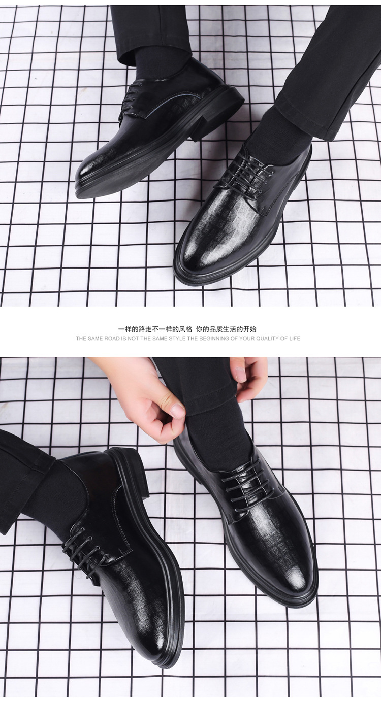 尖頭韓国風革靴 メンズ 若者向け イギリス風カジュアルシューズ ビジネスフォーマルシューズ メンズシューズ レースアップ インヒール エンハンスドヒール 新郎用結婚式シューズ