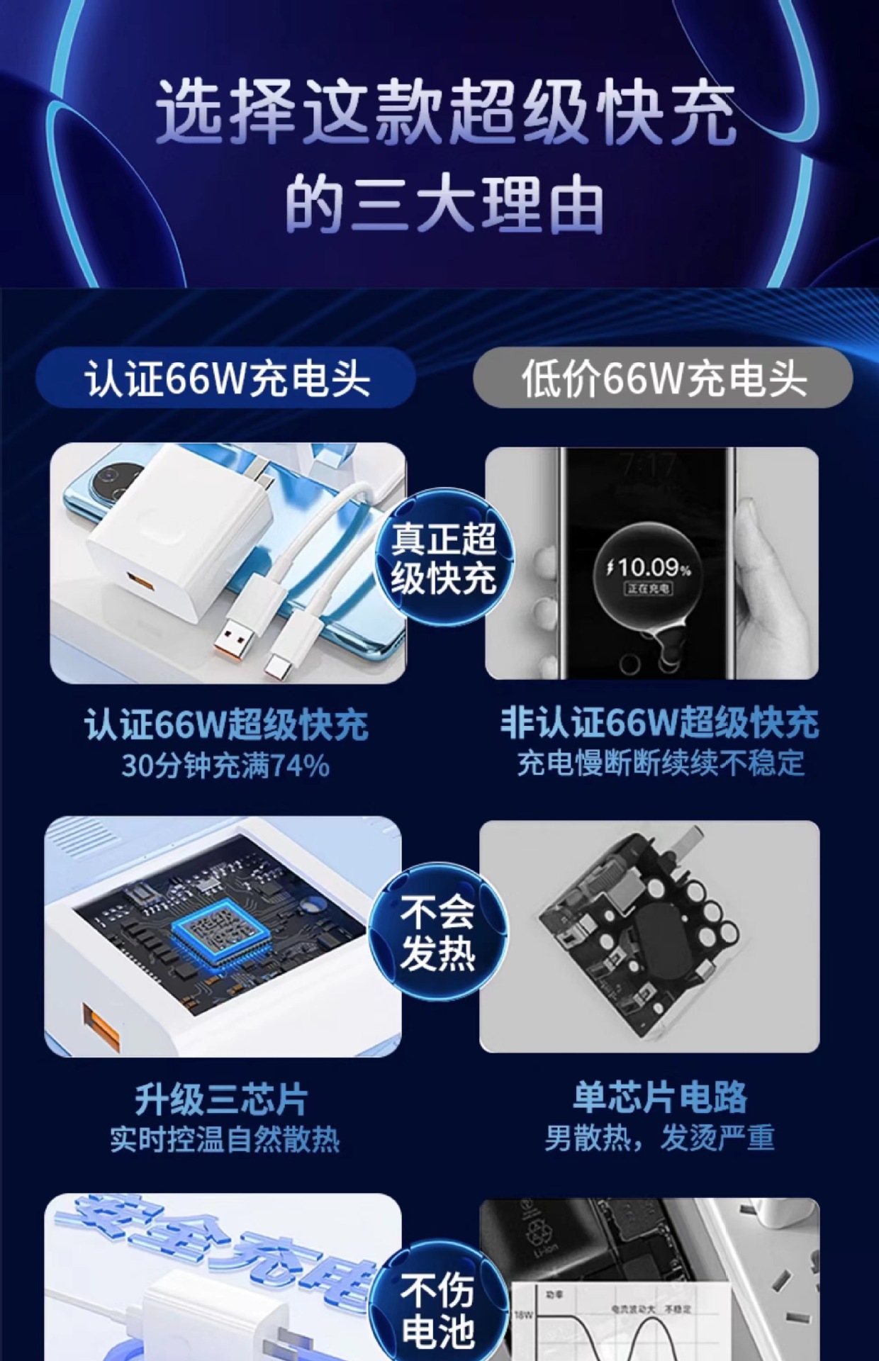 華為充電器ヘッド66W安卓全互換超速充携帯電話充電器工場スポット卸売りを適用する