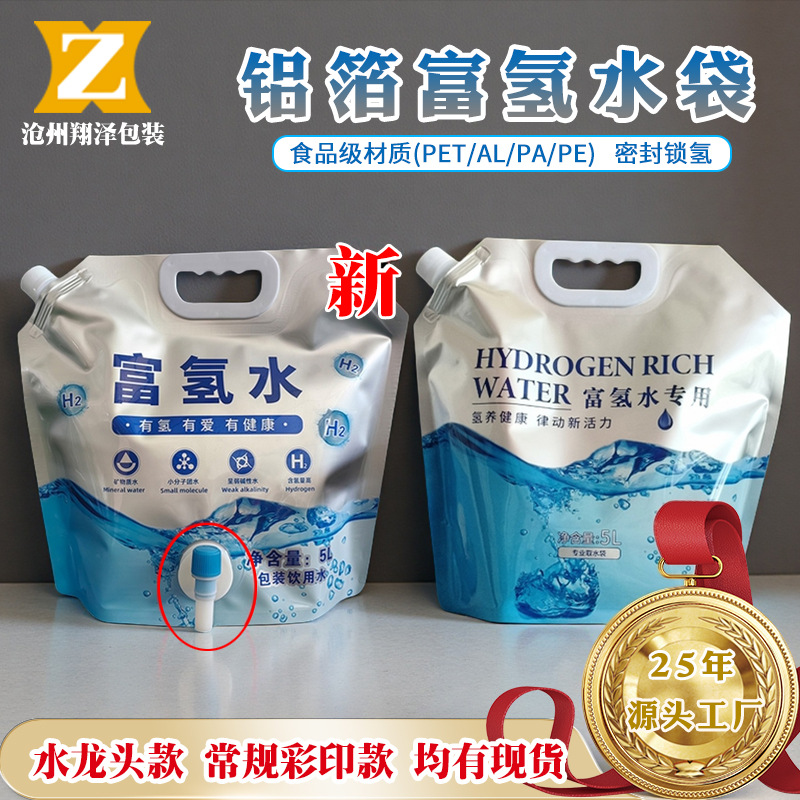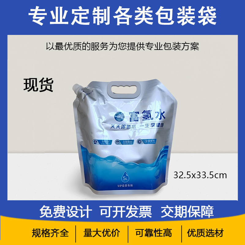 现货5L铝箔斜嘴富氢水袋食品级避光锁氢富氢水专用自立吸嘴包装袋