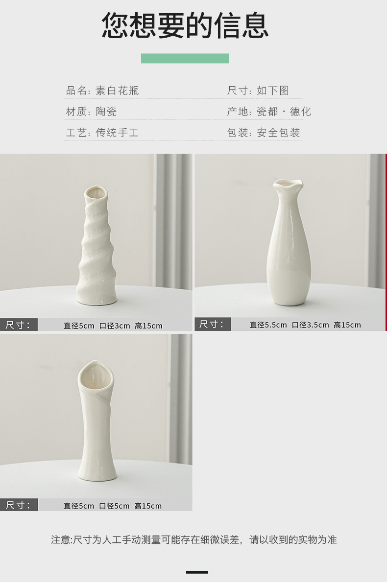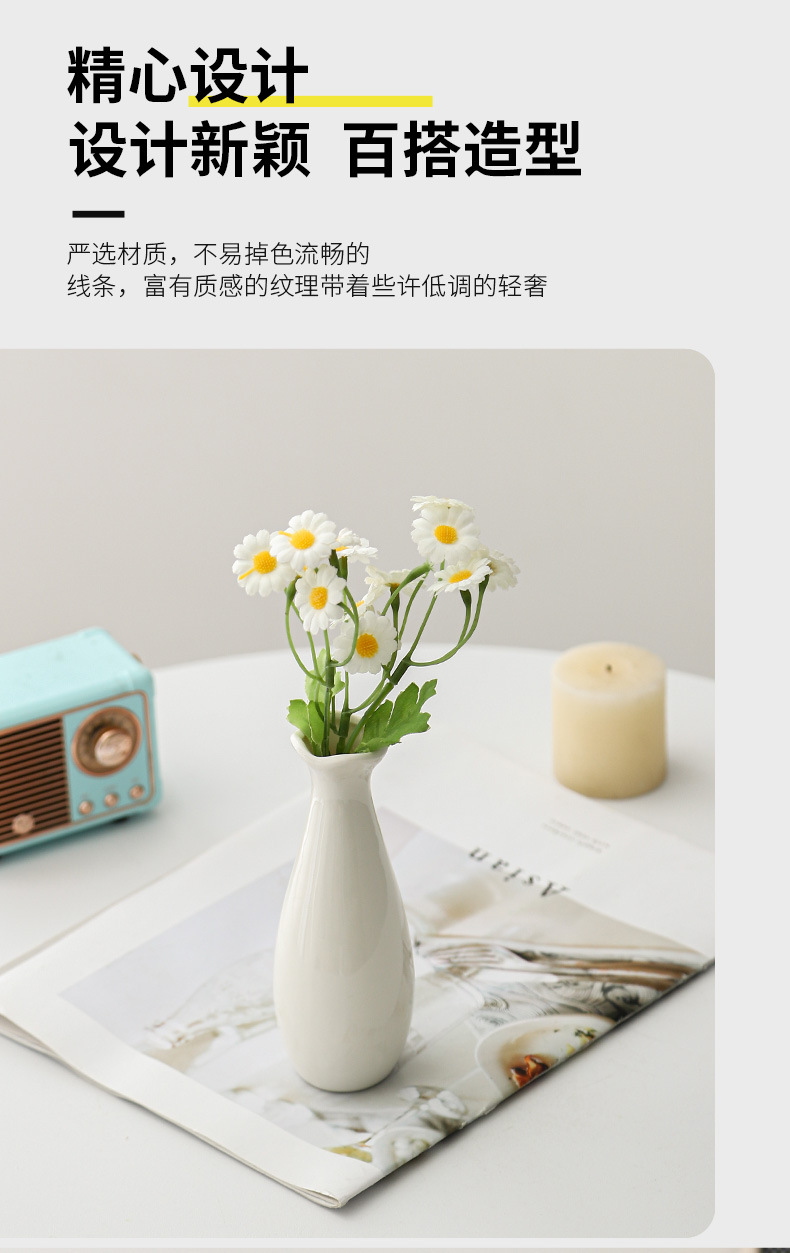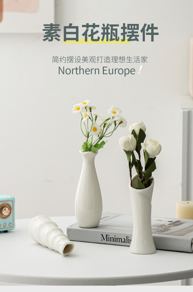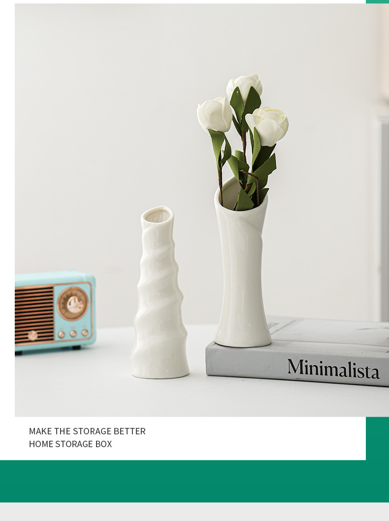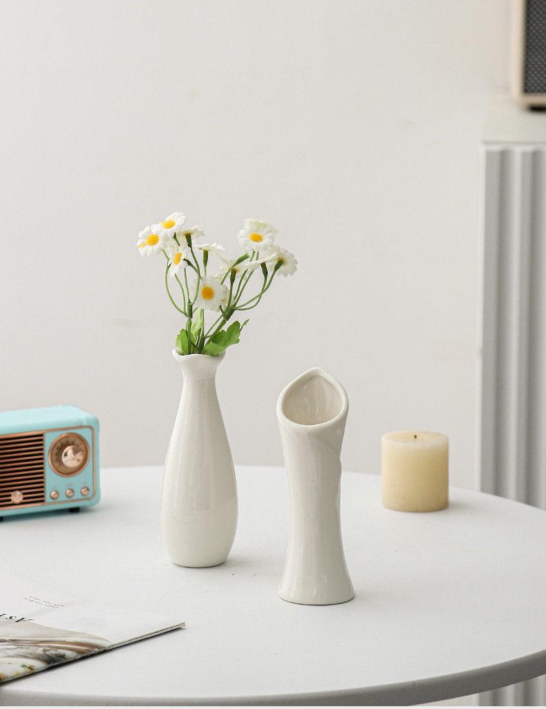 シンプルなミニ白い花瓶のドライフラワー生け花水培器陶磁器のテーブルの撮影道具の置物
