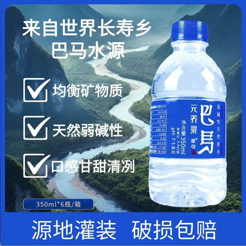 巴马源头天然水 350ML*6 瓶 含天然矿质 户外补水整箱