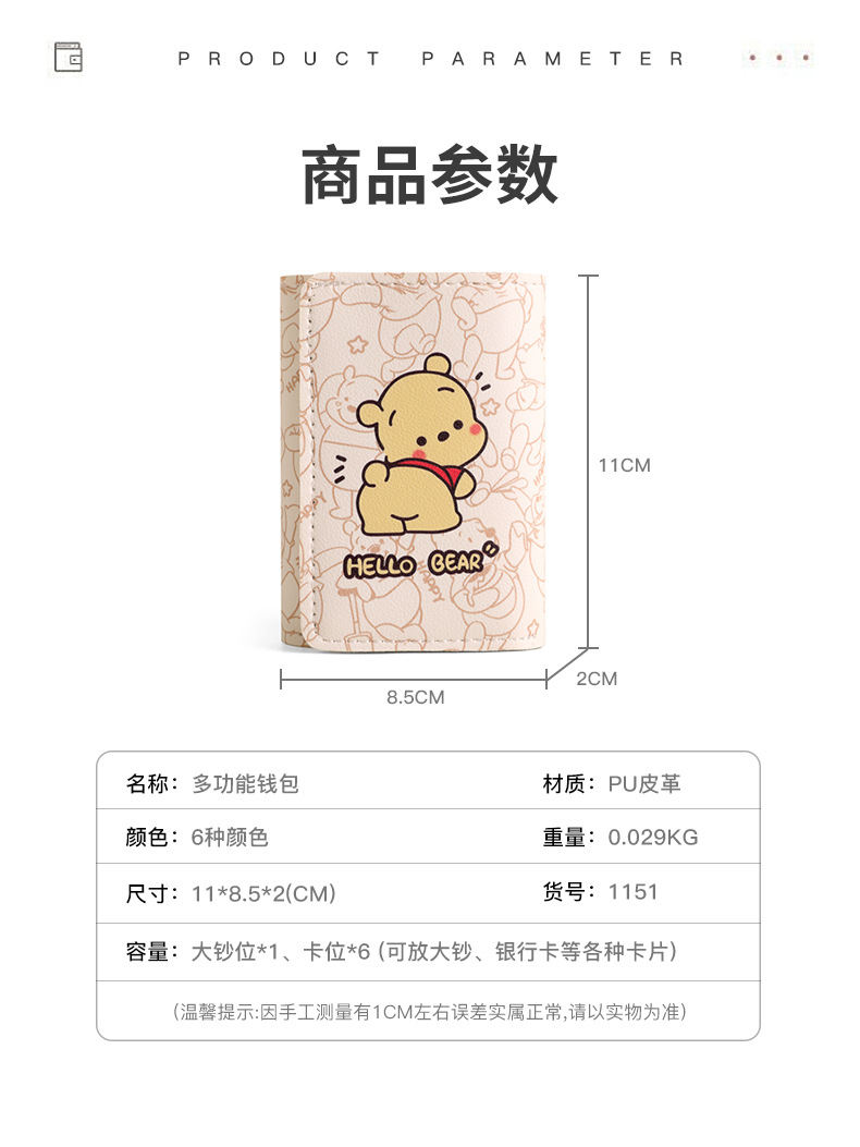 バレエ熊三つ折り財布かわいい多機能小銭入れ証明書カバン消磁防止カードクリップ漫画財布外国貿易