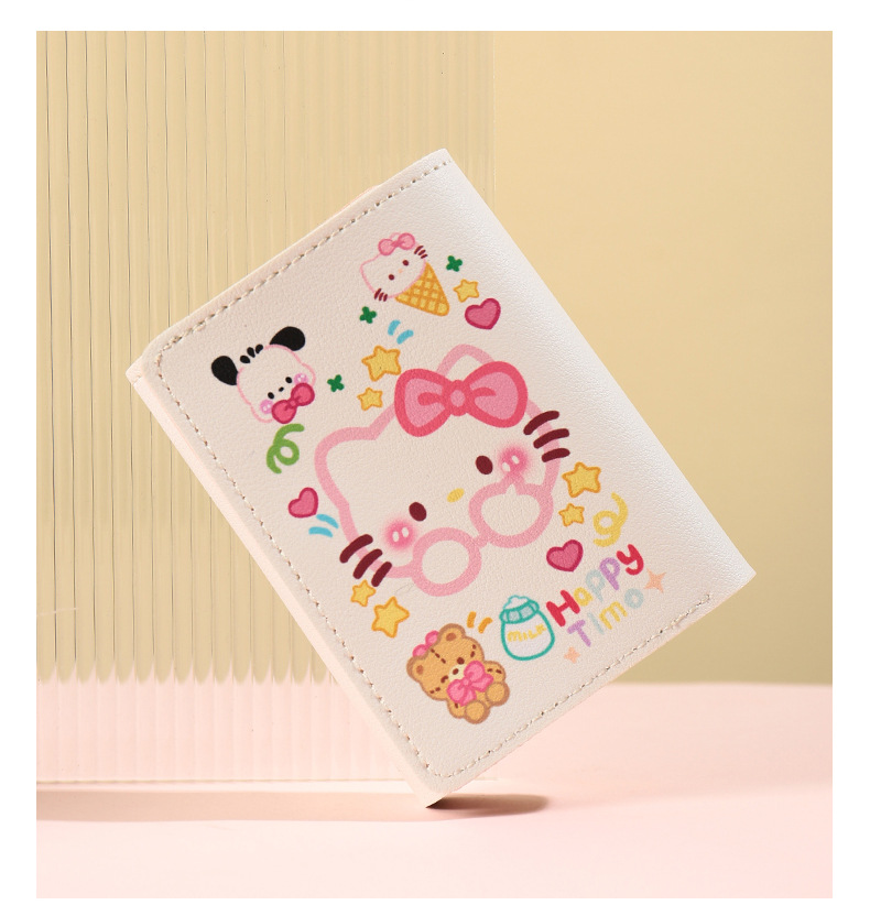 かわいい猫猫三つ折りバッグ証明書バッグ保護カバー多機能カードバッグレディース財布携帯カップル収納カードケース