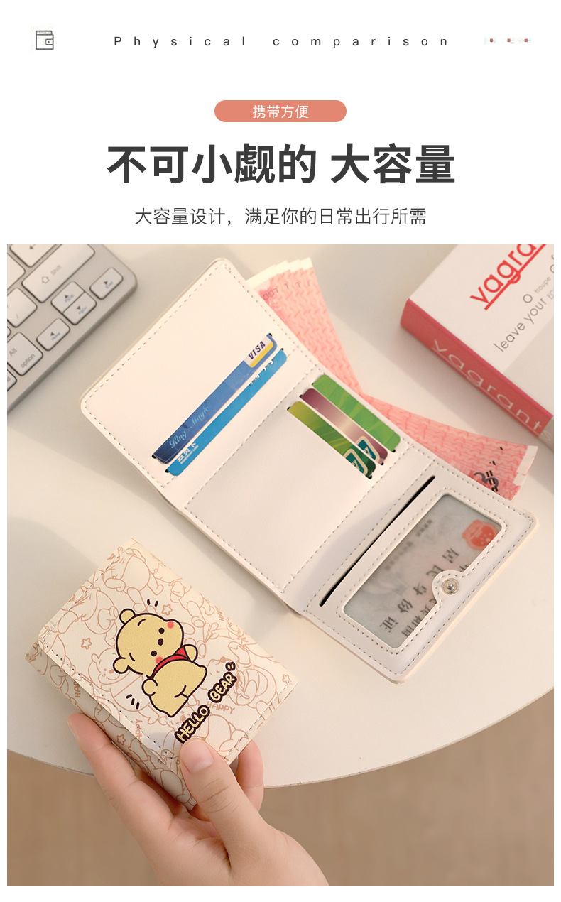 アニメいちご熊プリント三つ折り財布女性かわいいクリエイティブ携帯短い財布カードバッグ運転免許証一体