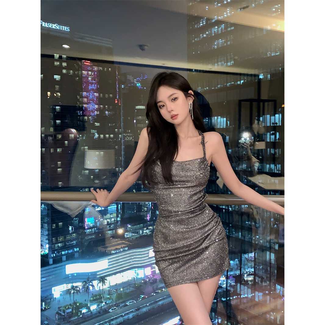 純粋な欲風のセクシーなキラキラとした首のワンピース女性の夏の新しいデザイン感