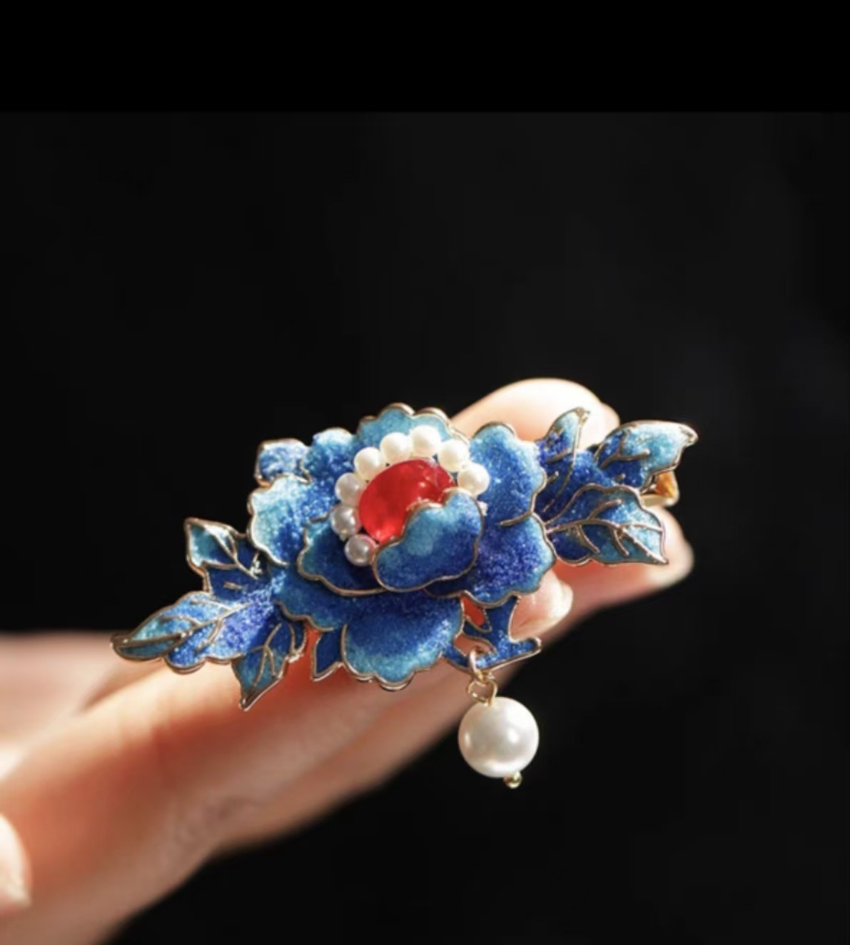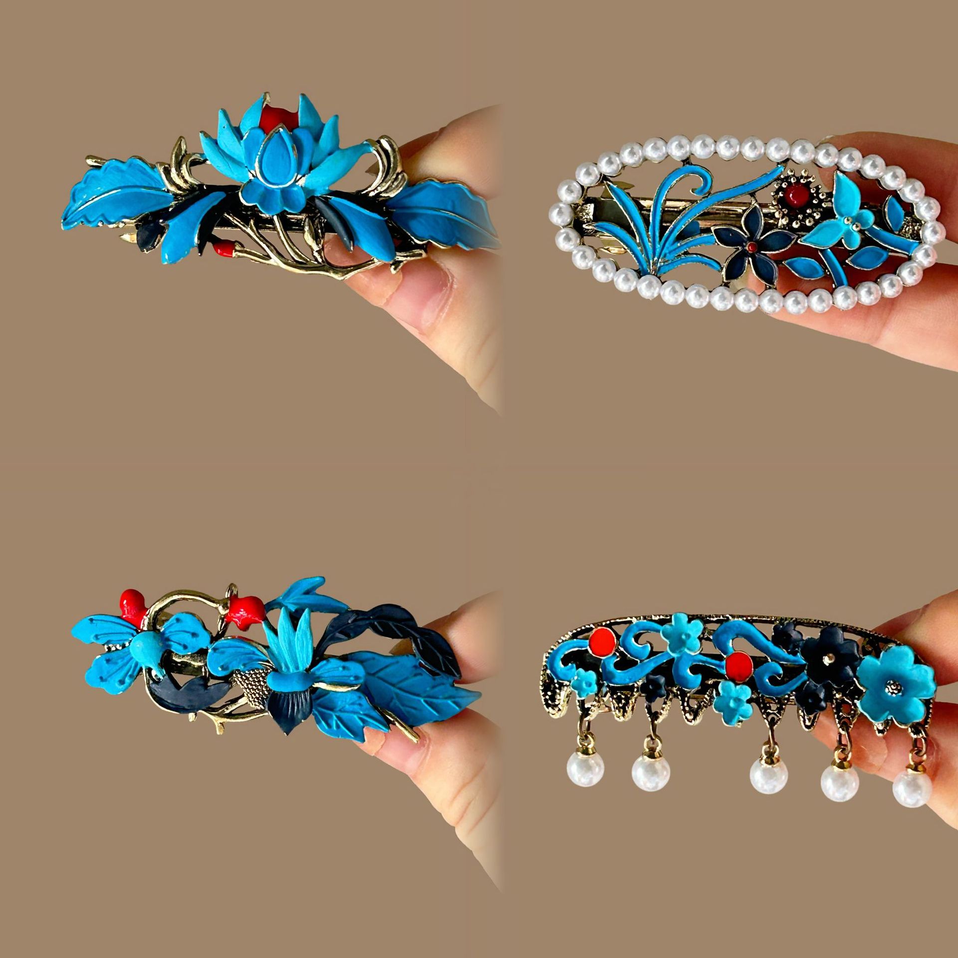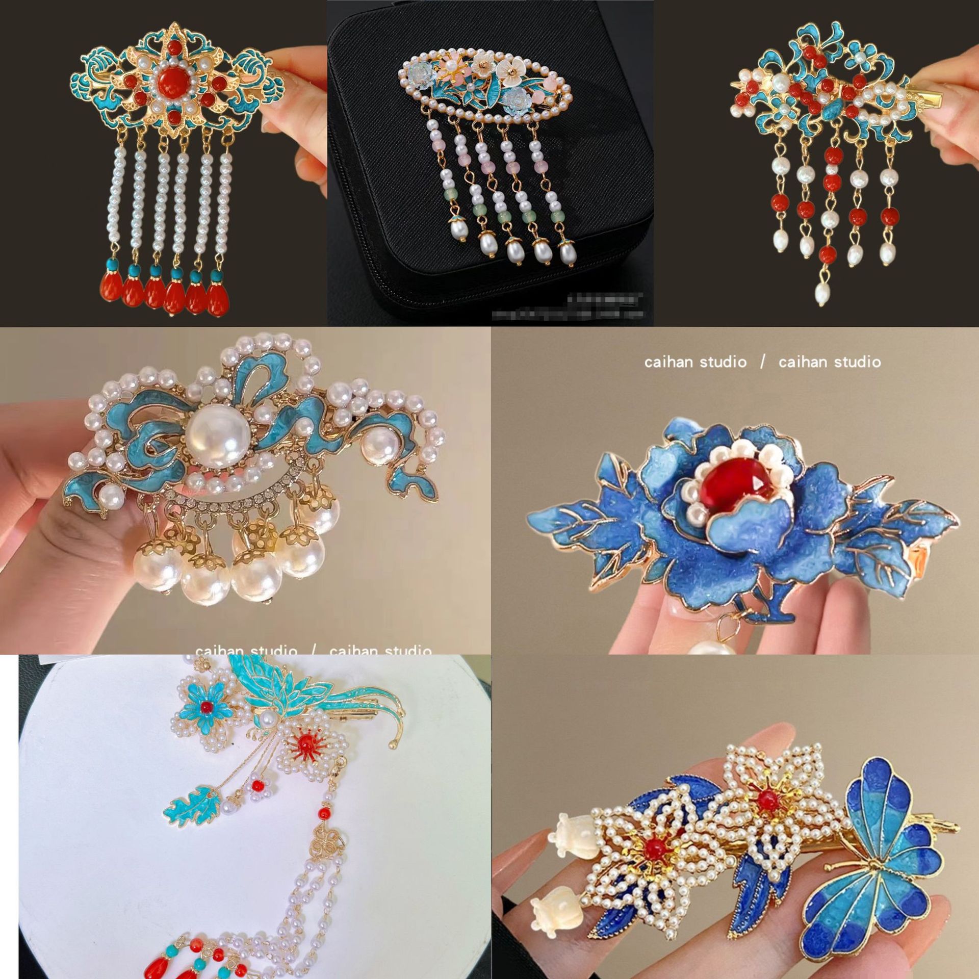 仿烧蓝花朵发夹女高级感精致发饰发卡古风头饰珍珠夹子刘海弹簧夹