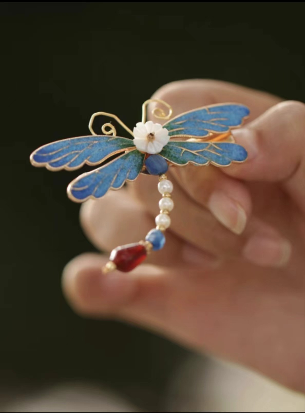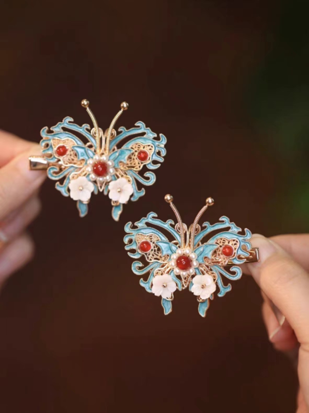 故乡遥 清汉女边夹仿烧蓝唐宋制发夹 蝴蝶古风发饰复古头饰古风珐