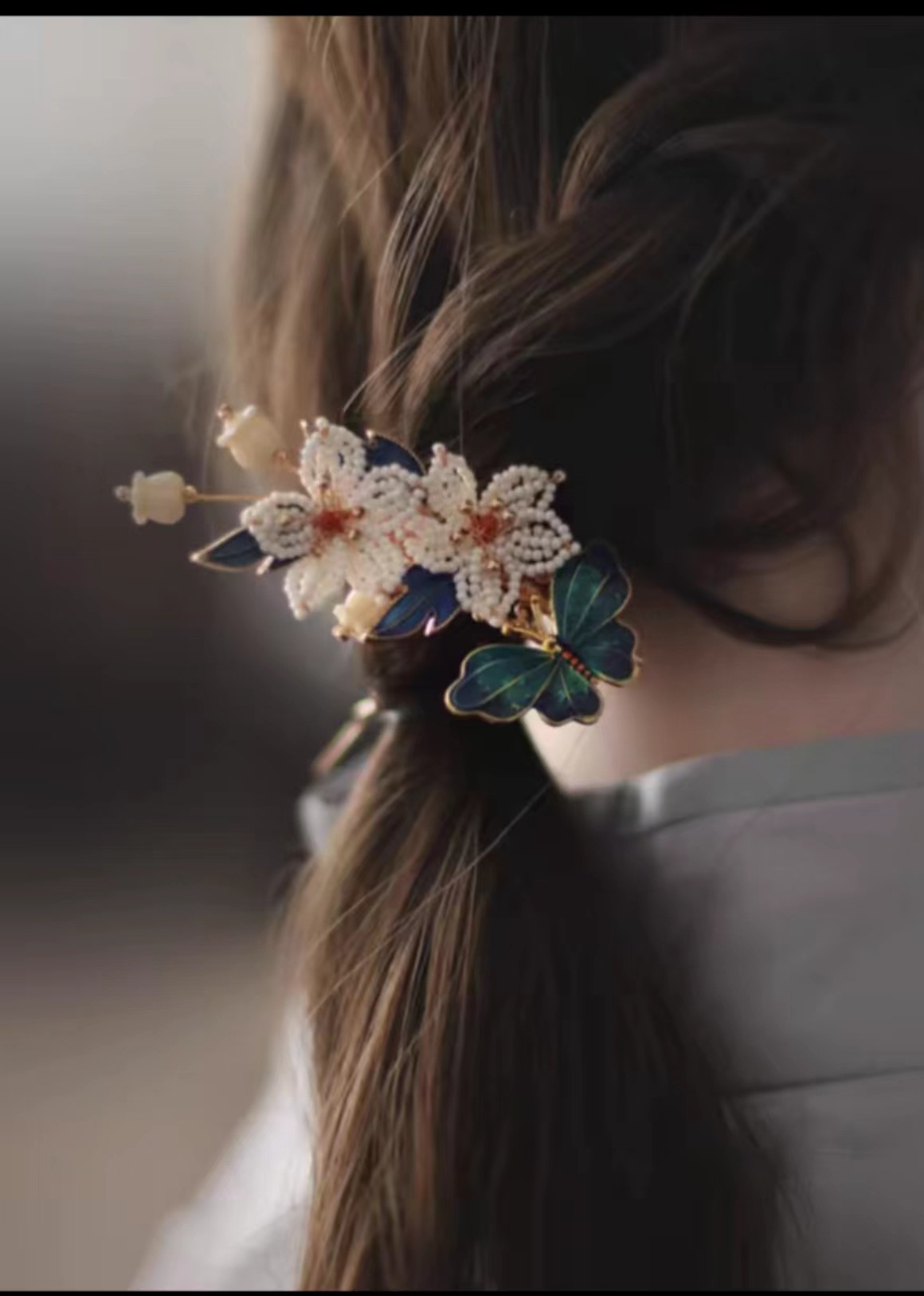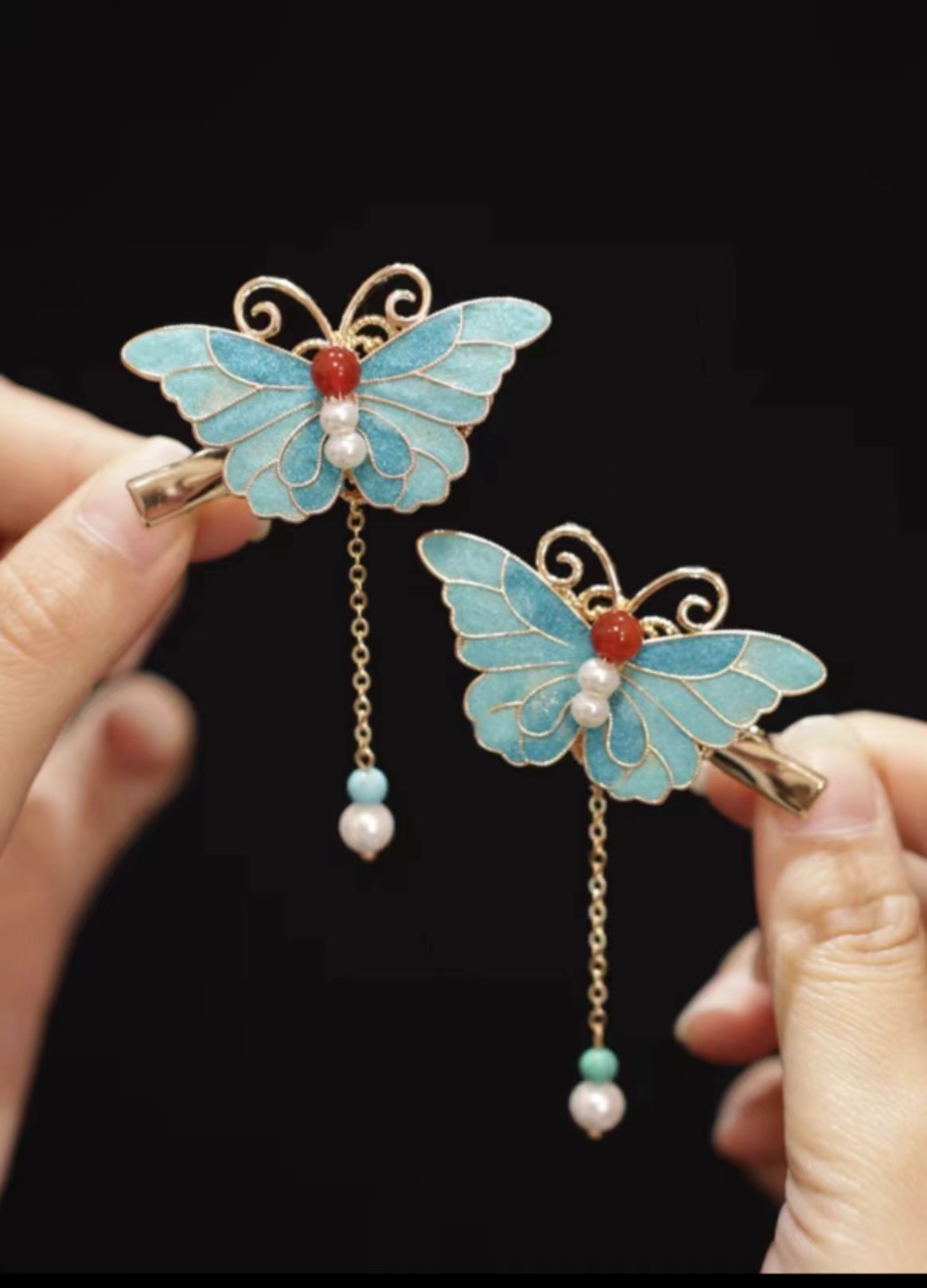 蝶恋花 发夹精致小边夹侧边 超仙气质清新粉蓝色头发夹子古风汉服