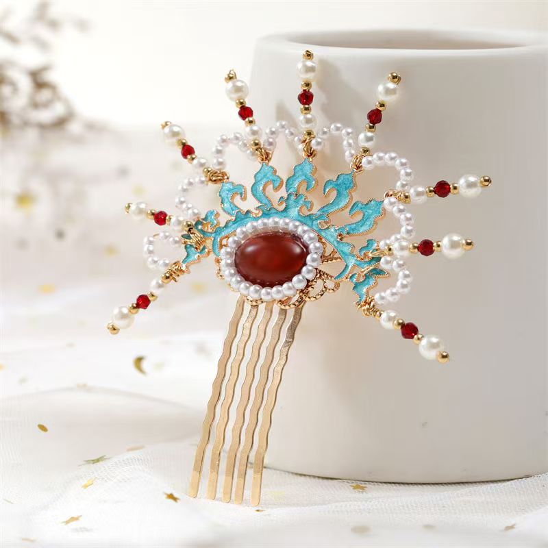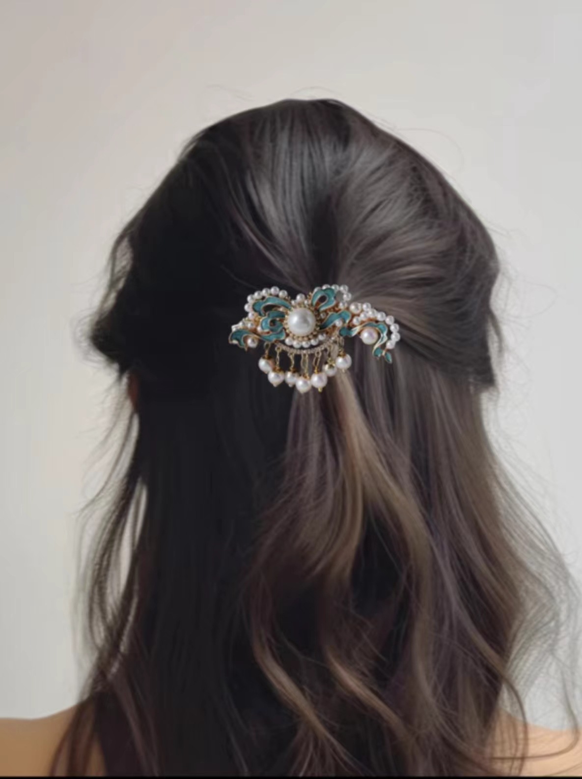 古風焼藍祥雲真珠ヘアピン新中国式フリンジエッジ挟み高級感クリップクリップクリップ髪飾り髪飾りヘアピン
