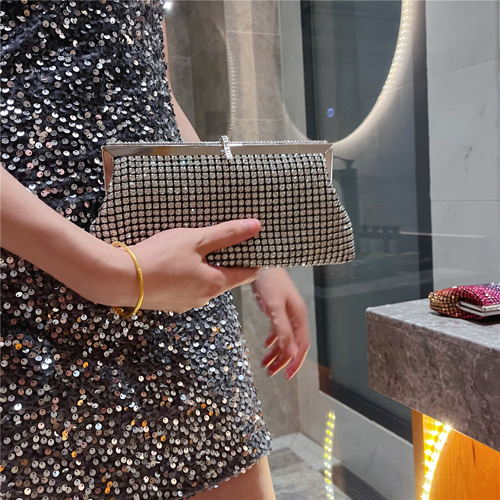2024起爆金クロスボーダー晩餐包純手ドリルボタン晩装包手包宴会包入ドリル晩餐包