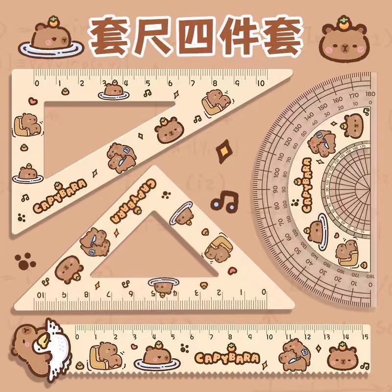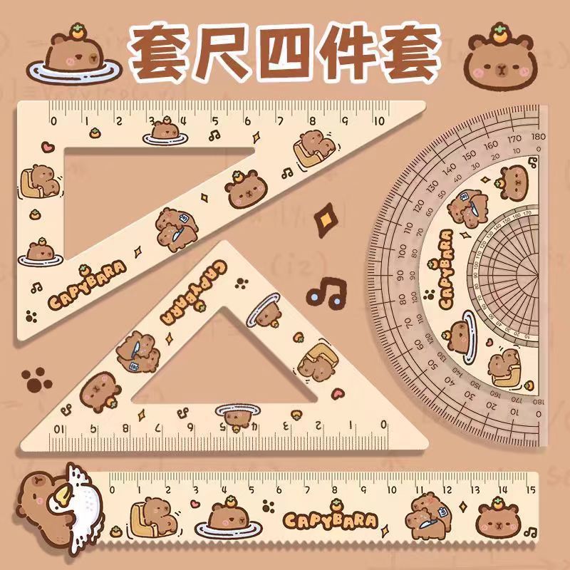 カートゥンカピバラアクリル物差し4点セット目盛り製図測定定規カード直尺三角学生文房具