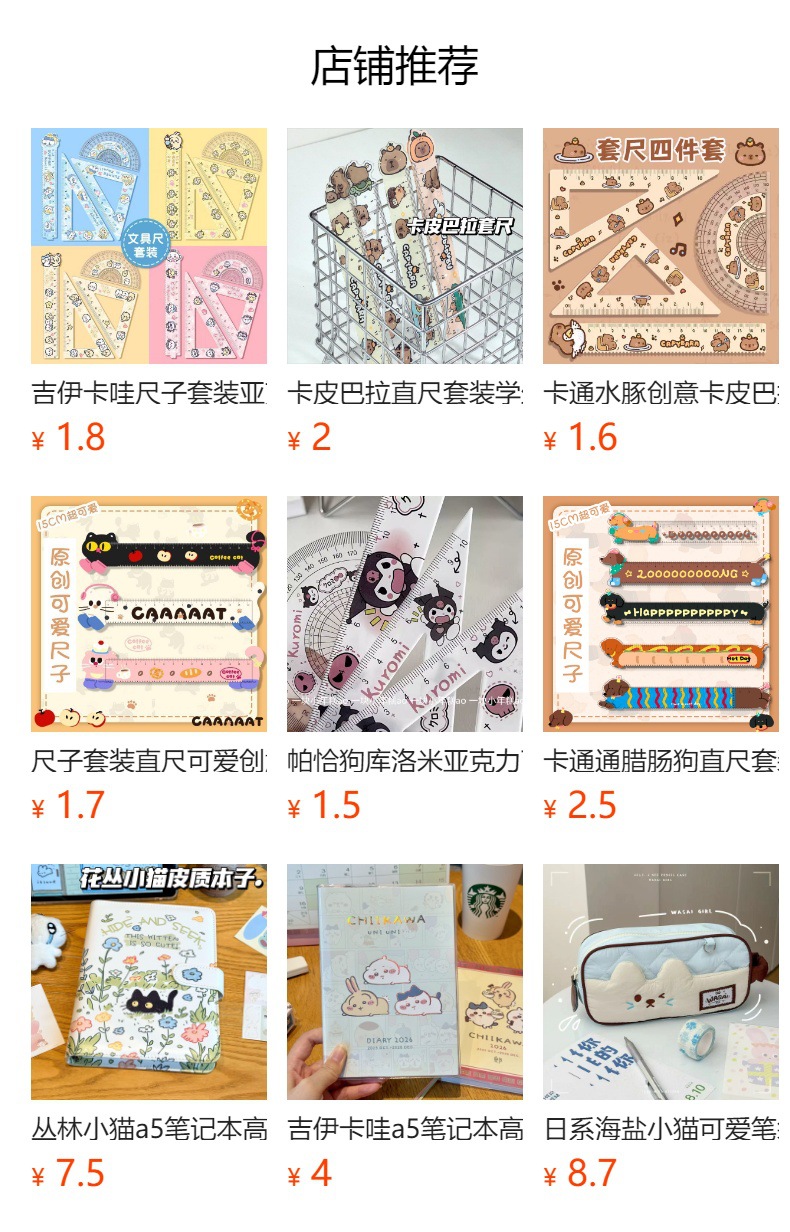 吉伊卡哇尺子套装乌萨奇小八亚克力学生测量尺子文具高颜值套尺