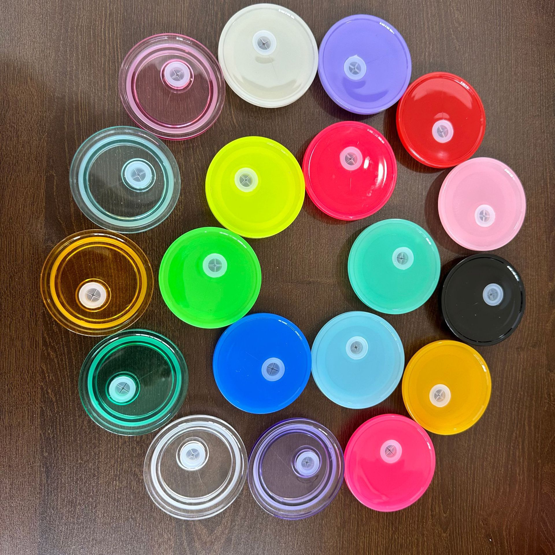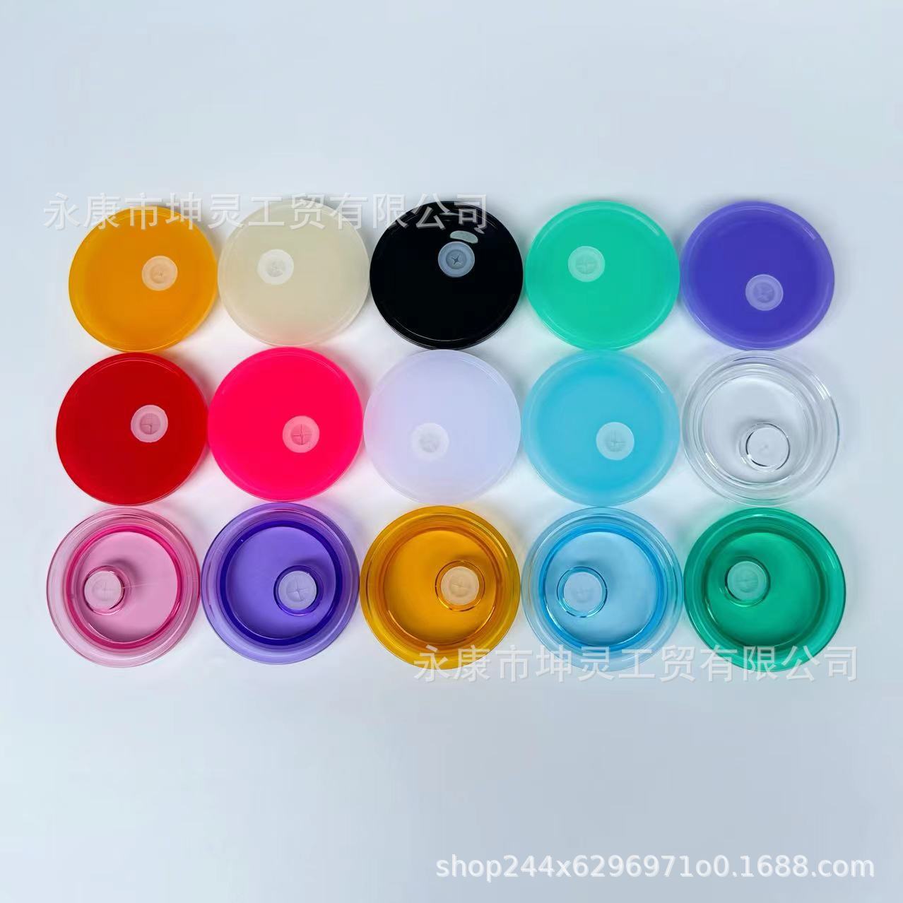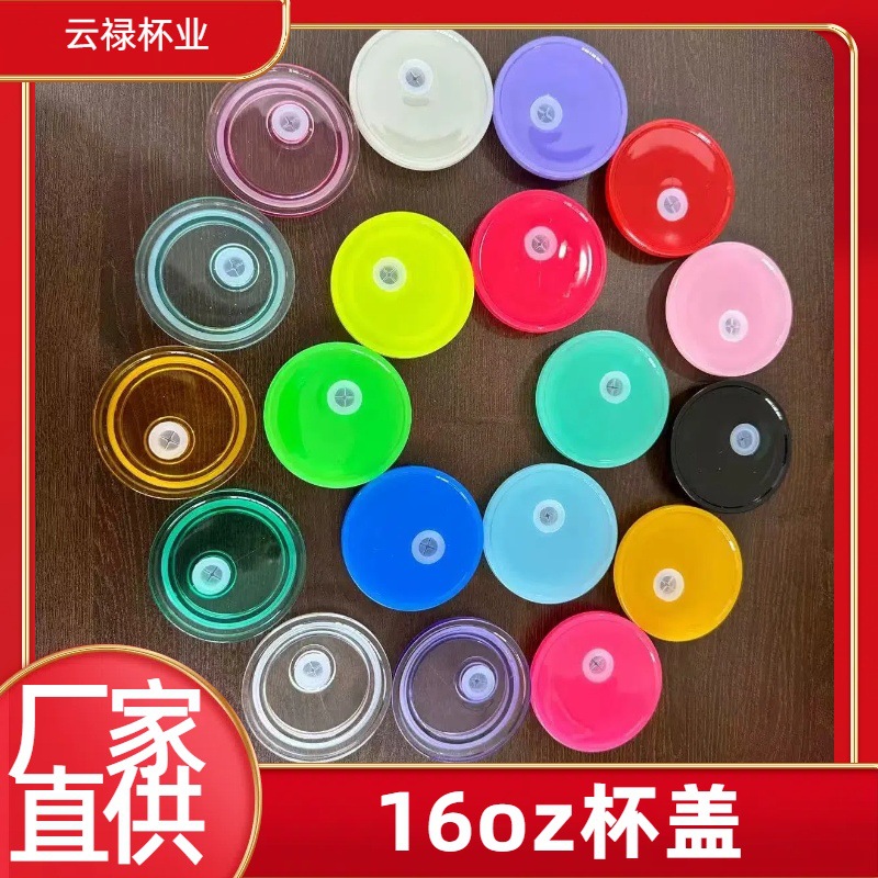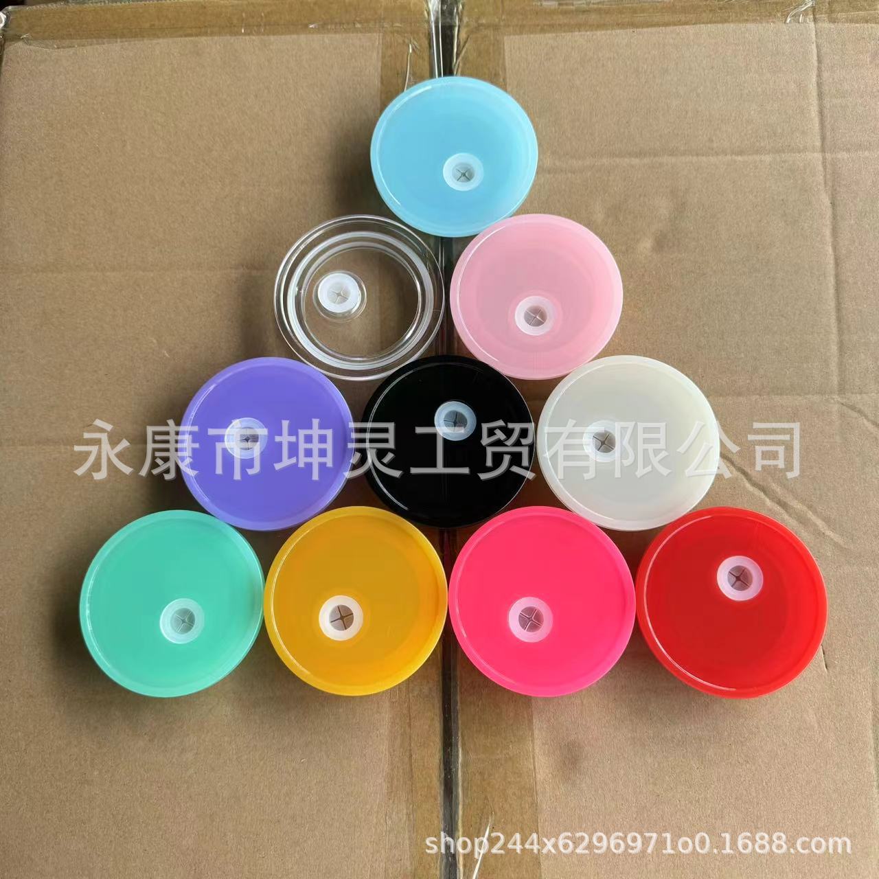16oz吸管杯盖玻璃杯盖梅森杯塑料盖马卡龙色盖子密封防漏盖批发