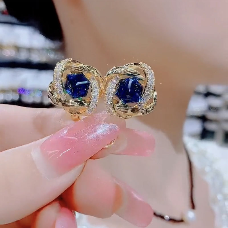 ブルークリスタルスタッドピアス女性の新しい合金トレンディなニッチデザインハイエンドライト高級インターネットセレブ秋と冬のイヤリング
