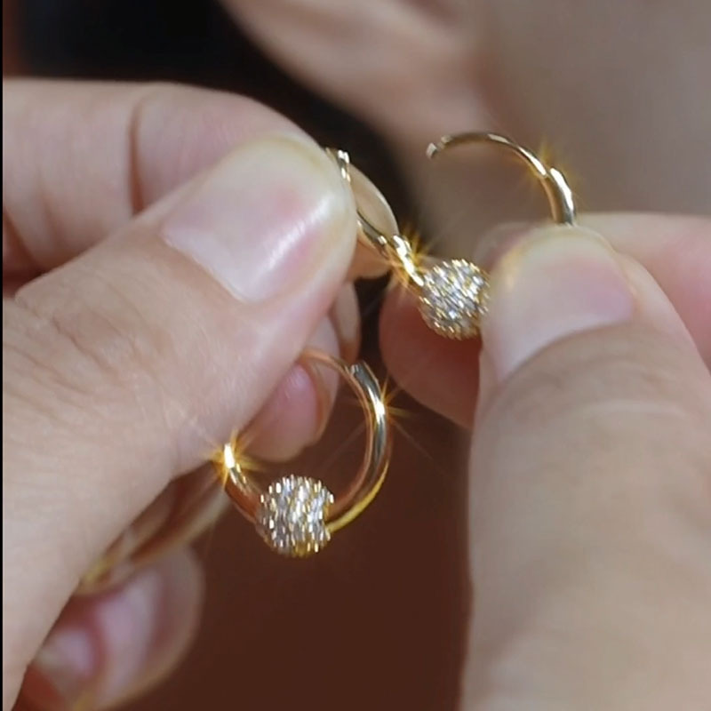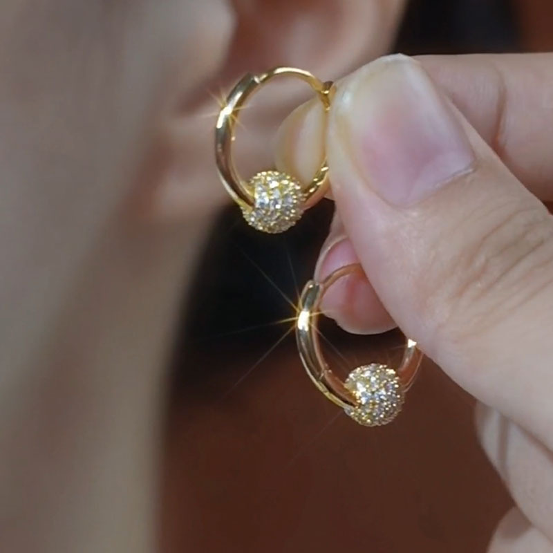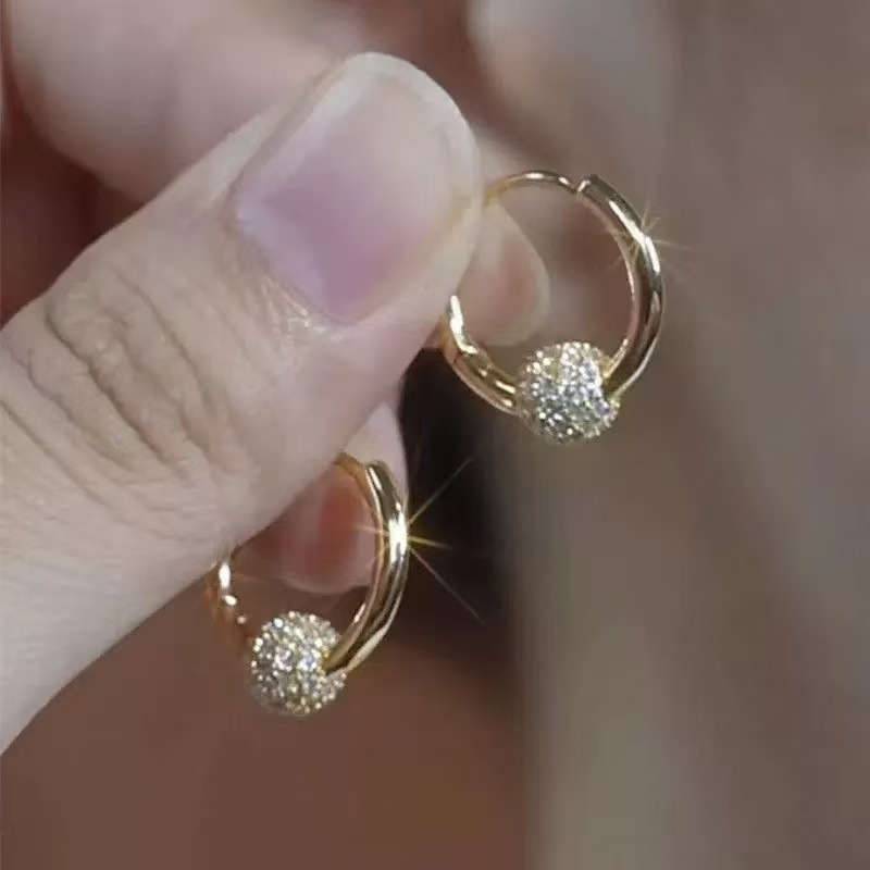 2025新款精致钻球耳扣女轻奢小众设计耳环女气质法式耳钉百搭耳饰