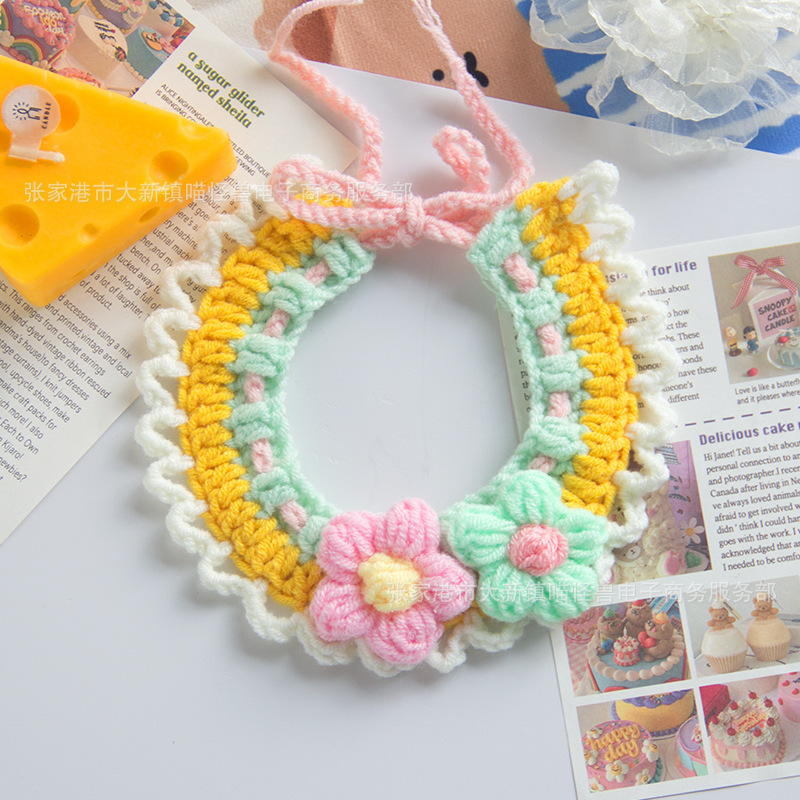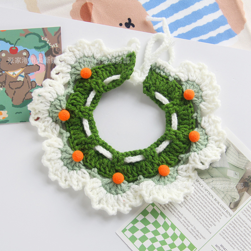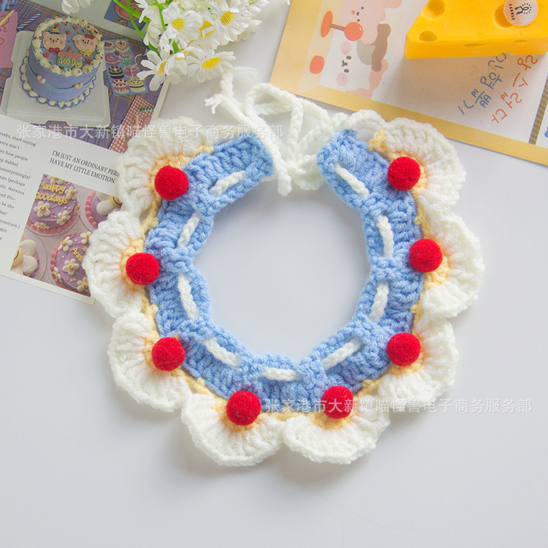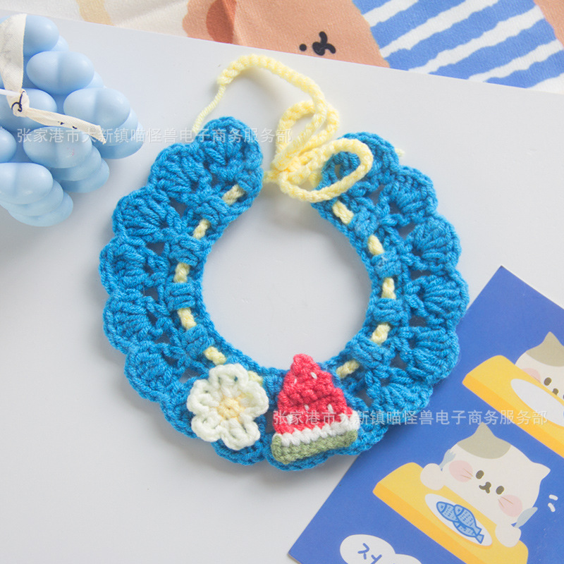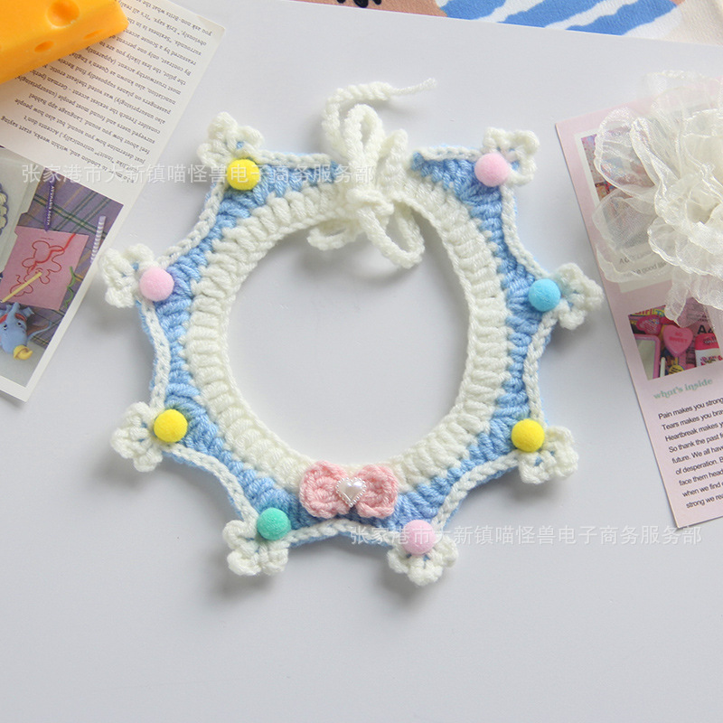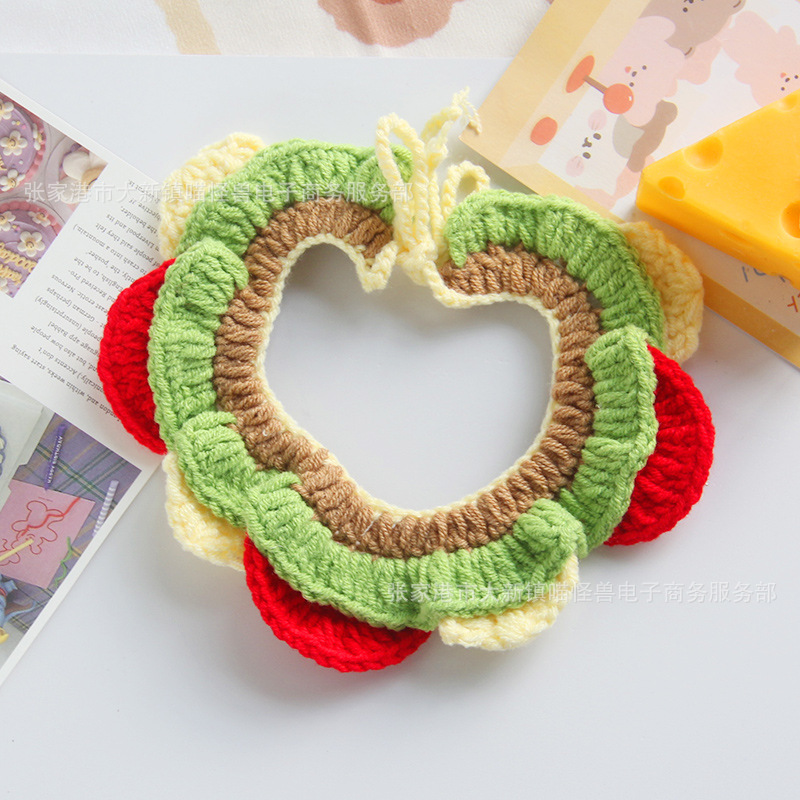可爱针织宠物口水巾围兜玩偶娃娃围脖手工钩织小狗狗猫咪装饰品