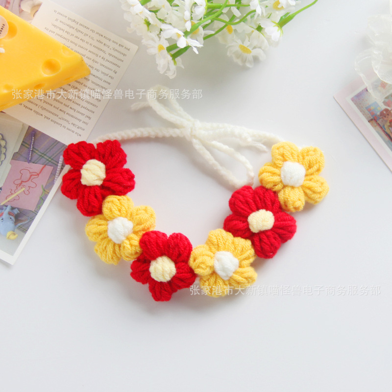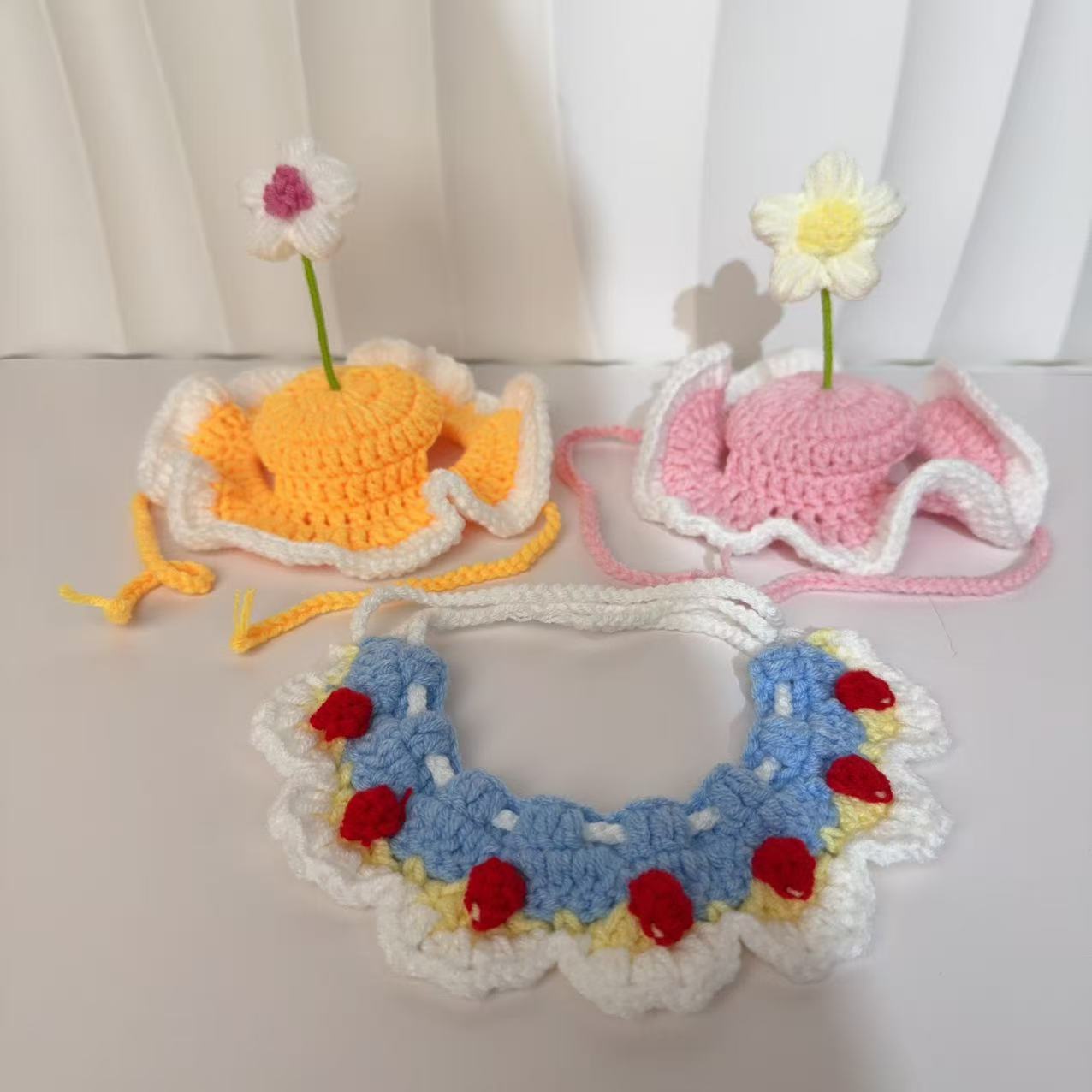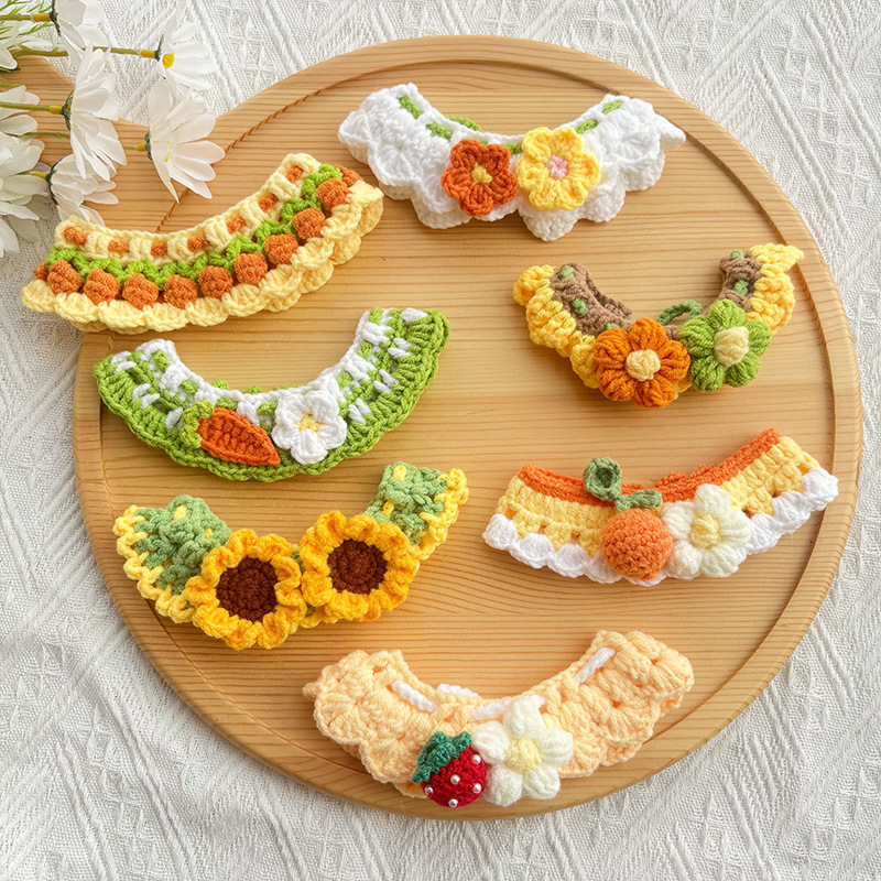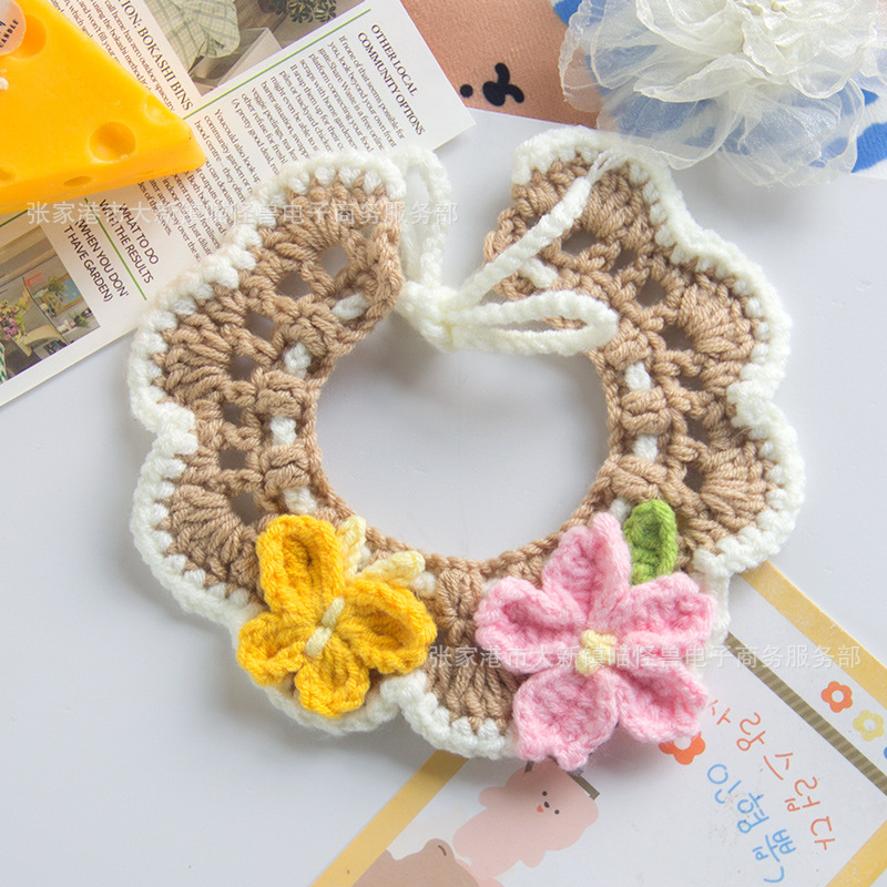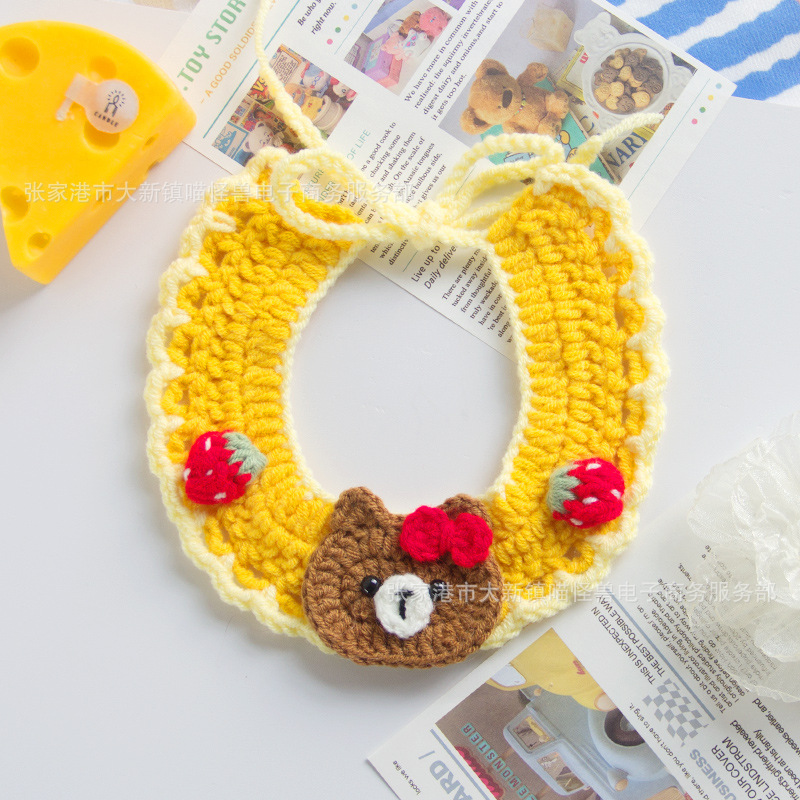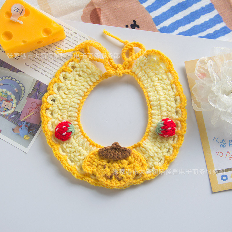可爱针织宠物口水巾围兜玩偶娃娃围脖手工钩织小狗狗猫咪装饰品