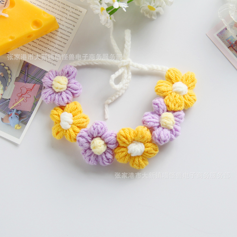 25春のペットは首を囲む猫の花を編んで首輪を編みます。