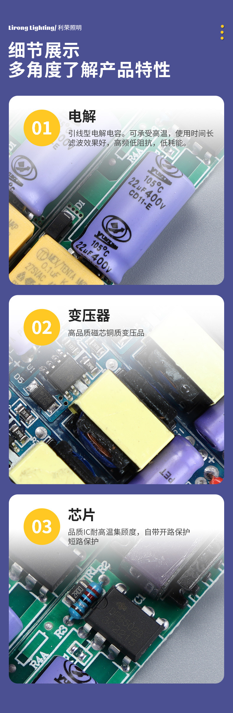 三色セグメント駆動屋外ランプLED電源ドライバオフィスランプ安定器定電流駆動電源付き