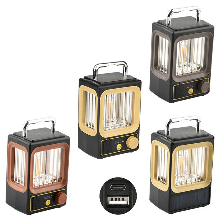 跨境新款太阳能露营灯无极调光便捷式钨丝灯手提式可充电帐篷灯