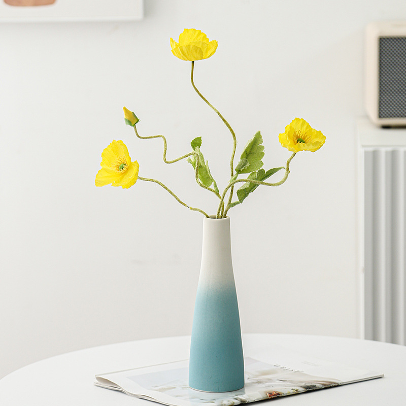創意陶磁器の小口花瓶の置物がシンプルで、家庭のリビングテーブルの玄関に乾いた生け花の花が飾られています。