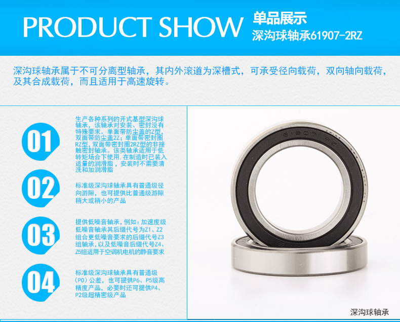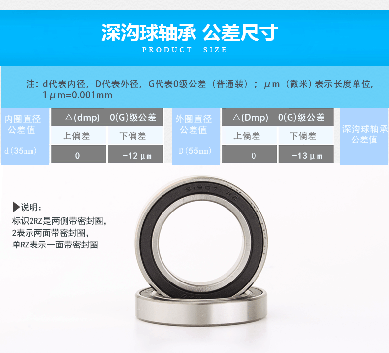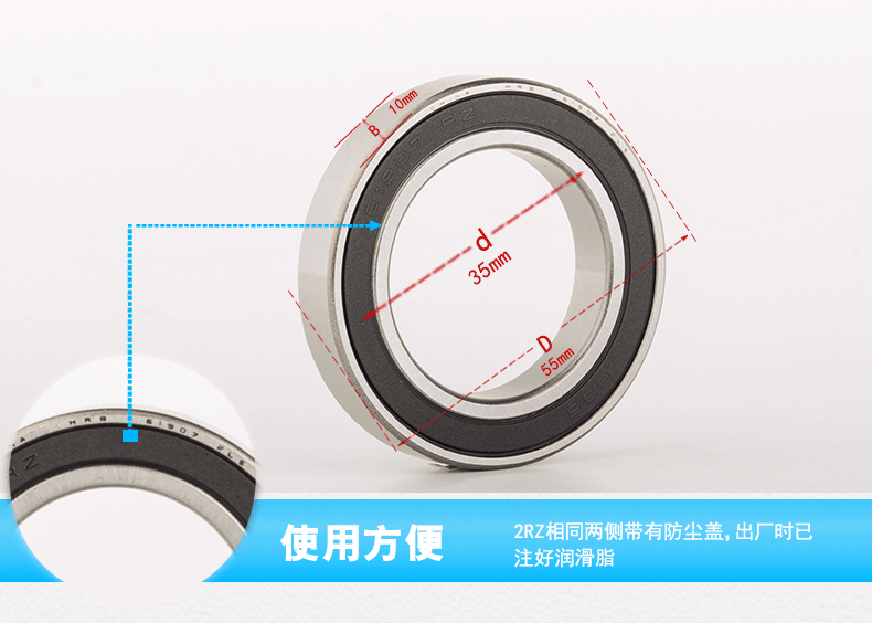 61907-2rz 6907 2rsベアリング深溝ボール内径35mm外径55mm
