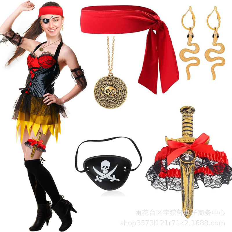 クロスボーダーハロウィンプロムパーティーコスプレ海賊ドレスアップアクセサリーヘッドスカーフベルトネックレスブレスレットセット