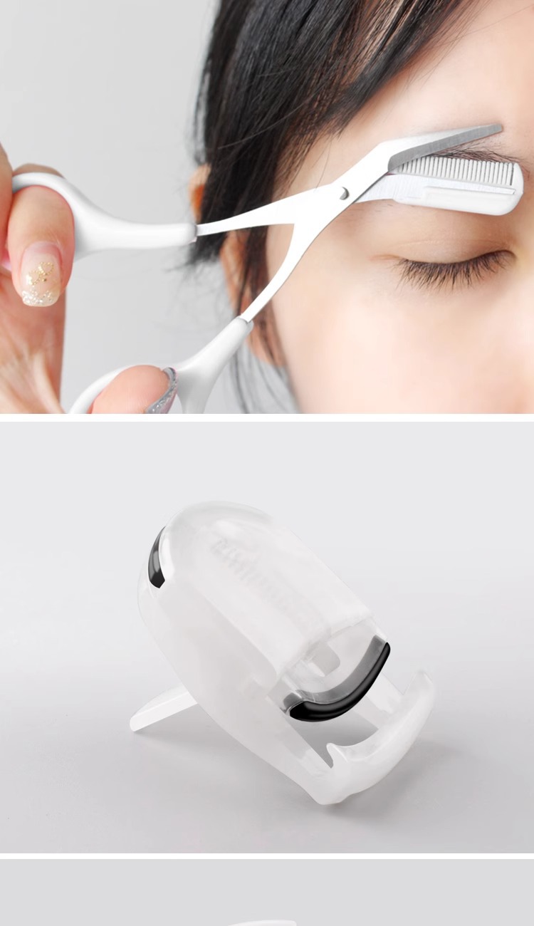 送料無料/眉毛トリマーA1V-眉毛用コーム付き携帯用まつげカーラー、先のとがった小さなハサミ、細い眉毛用ハサミ