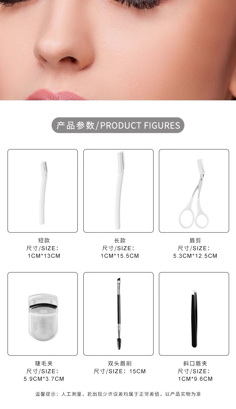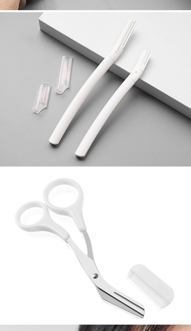 厂家批发修眉刀眉剪带梳子剪眉毛剪新手迷你修型化妆刮眉刀三件套