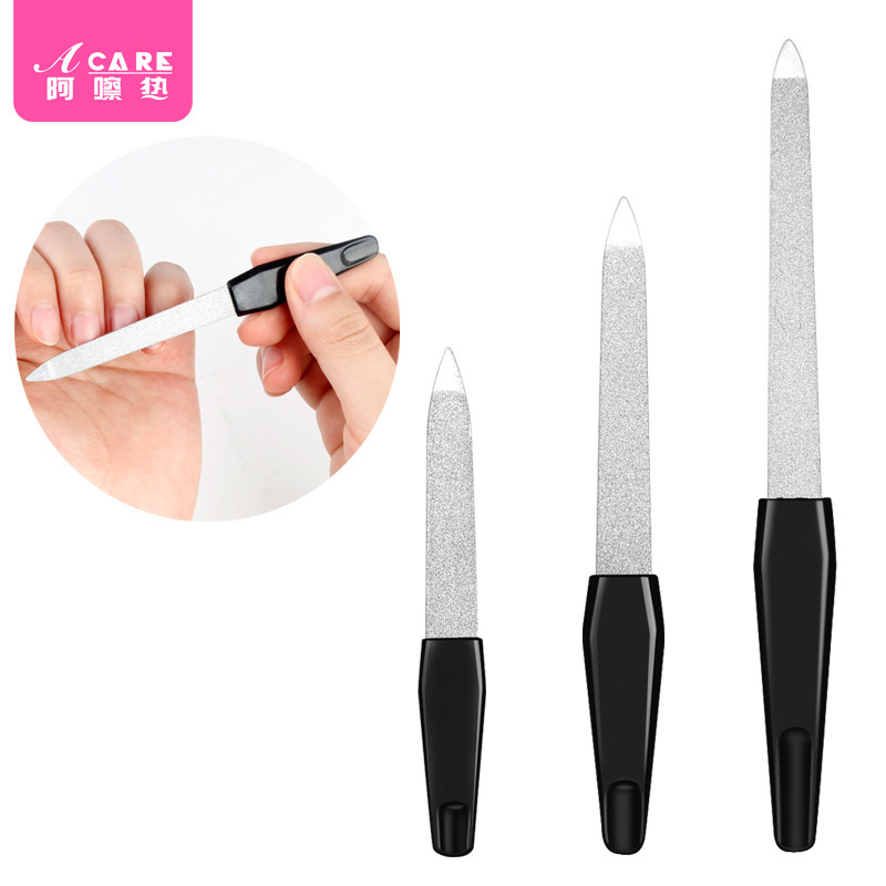 送料無料/10Y ブラックハンドルステンレス鋼ネイルファイル研磨ストリップ両面ネイルポリッシャーマニキュア