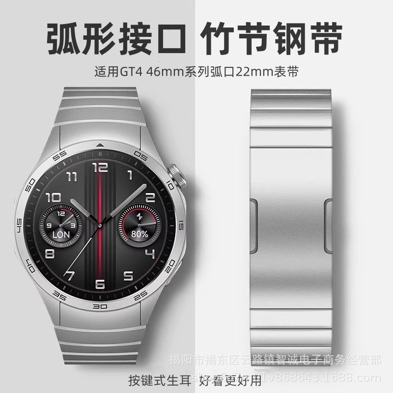 竹節一株鋼带適用華為GT4 46mm金属表鏈专用弧口按键式生耳手表带