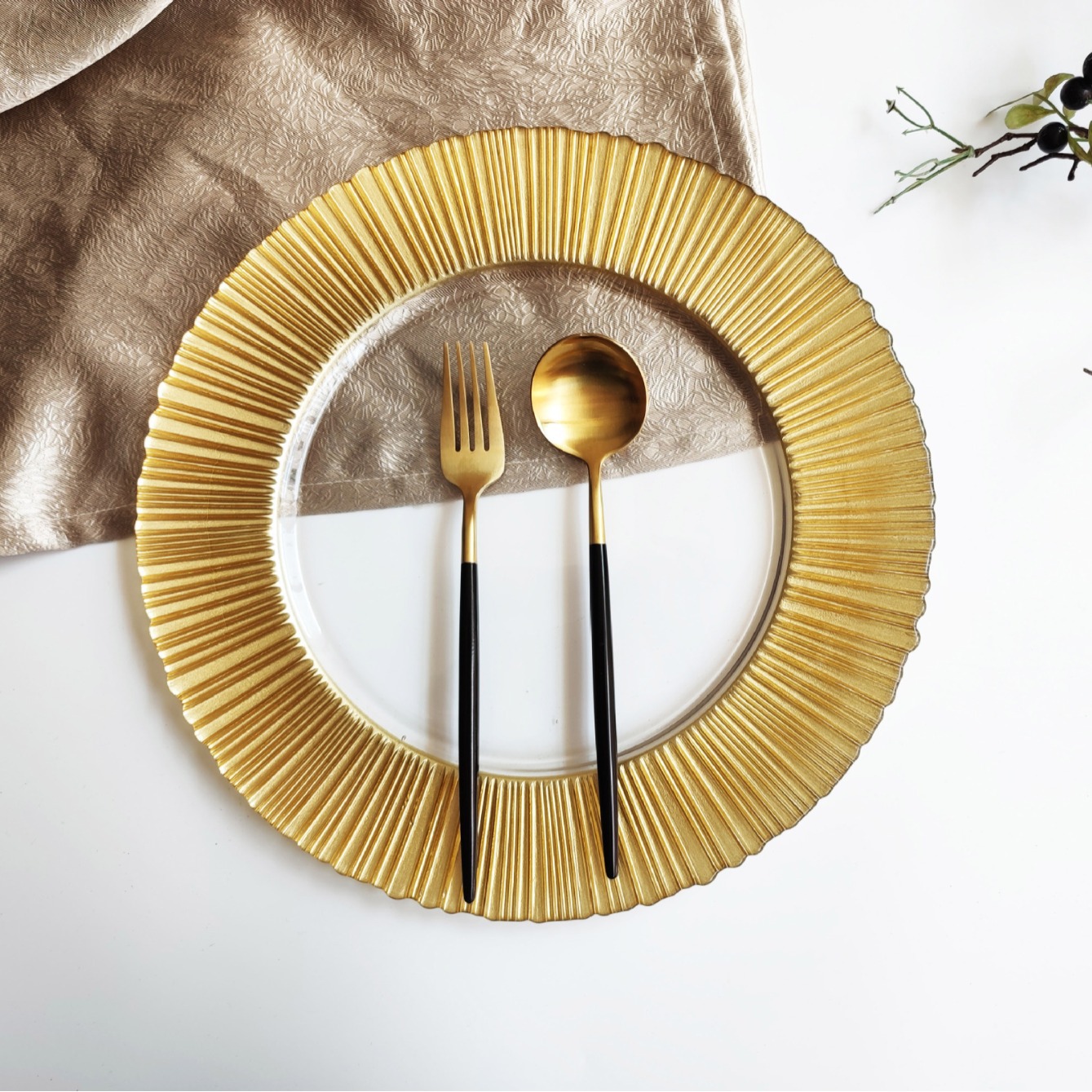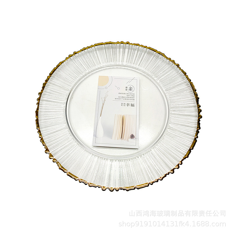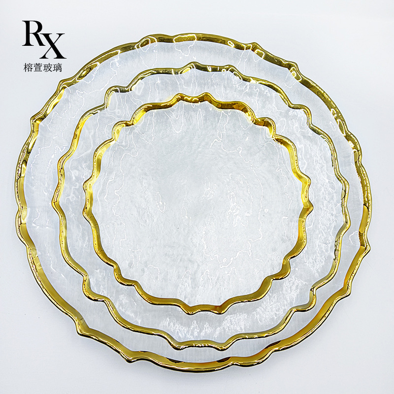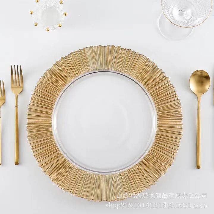 欧式创意金边玻璃盘西餐盘子牛排垫盘家用金色托盘圆形厂家批发