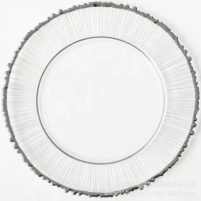 轻奢高档玻璃盘金边条纹盘牛排盘西餐宴会餐盘大号甜品盘餐桌摆盘