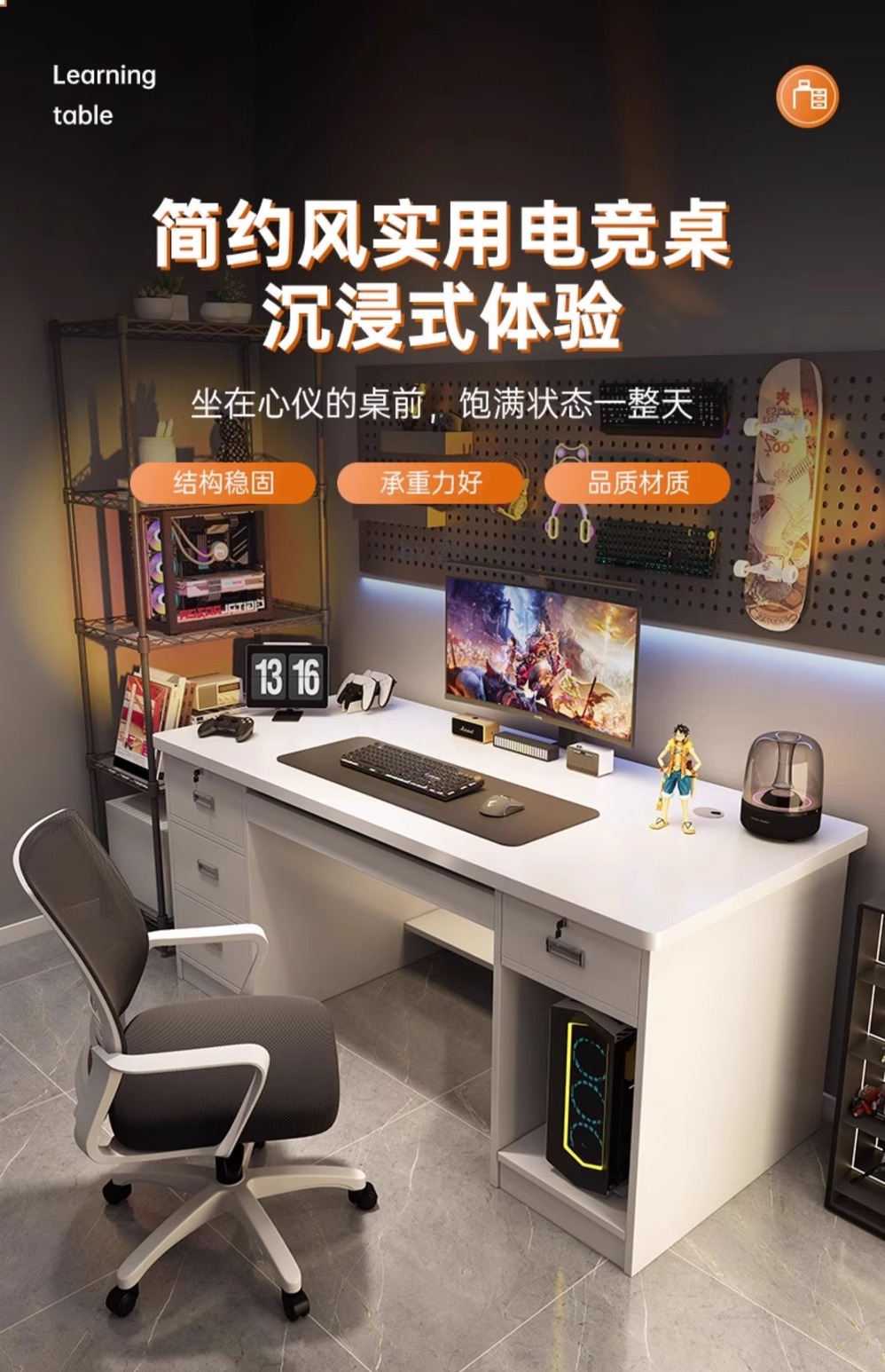 办公桌带锁家用电脑桌台式简约桌子工作台多抽屉书桌职员桌椅组合