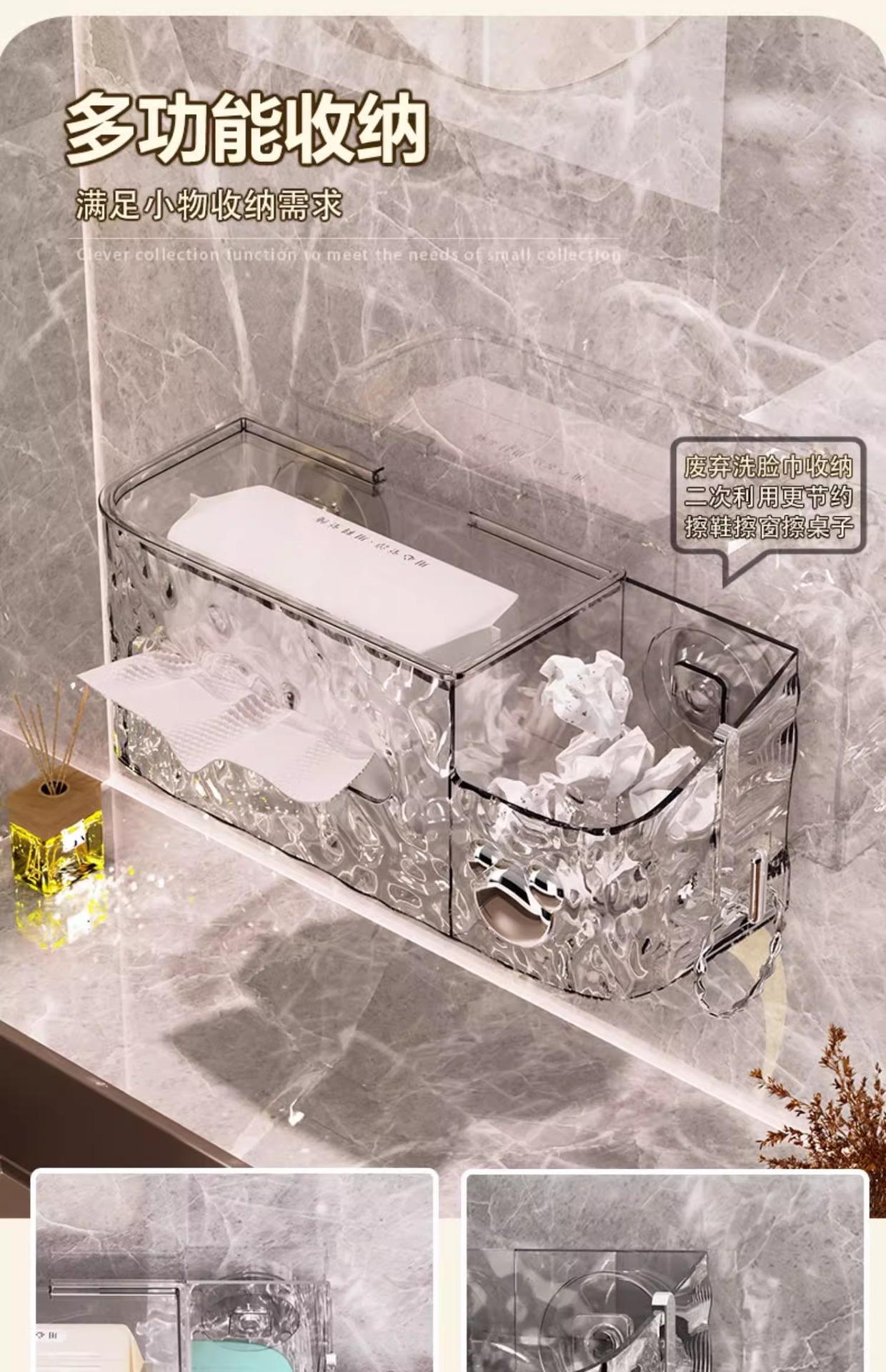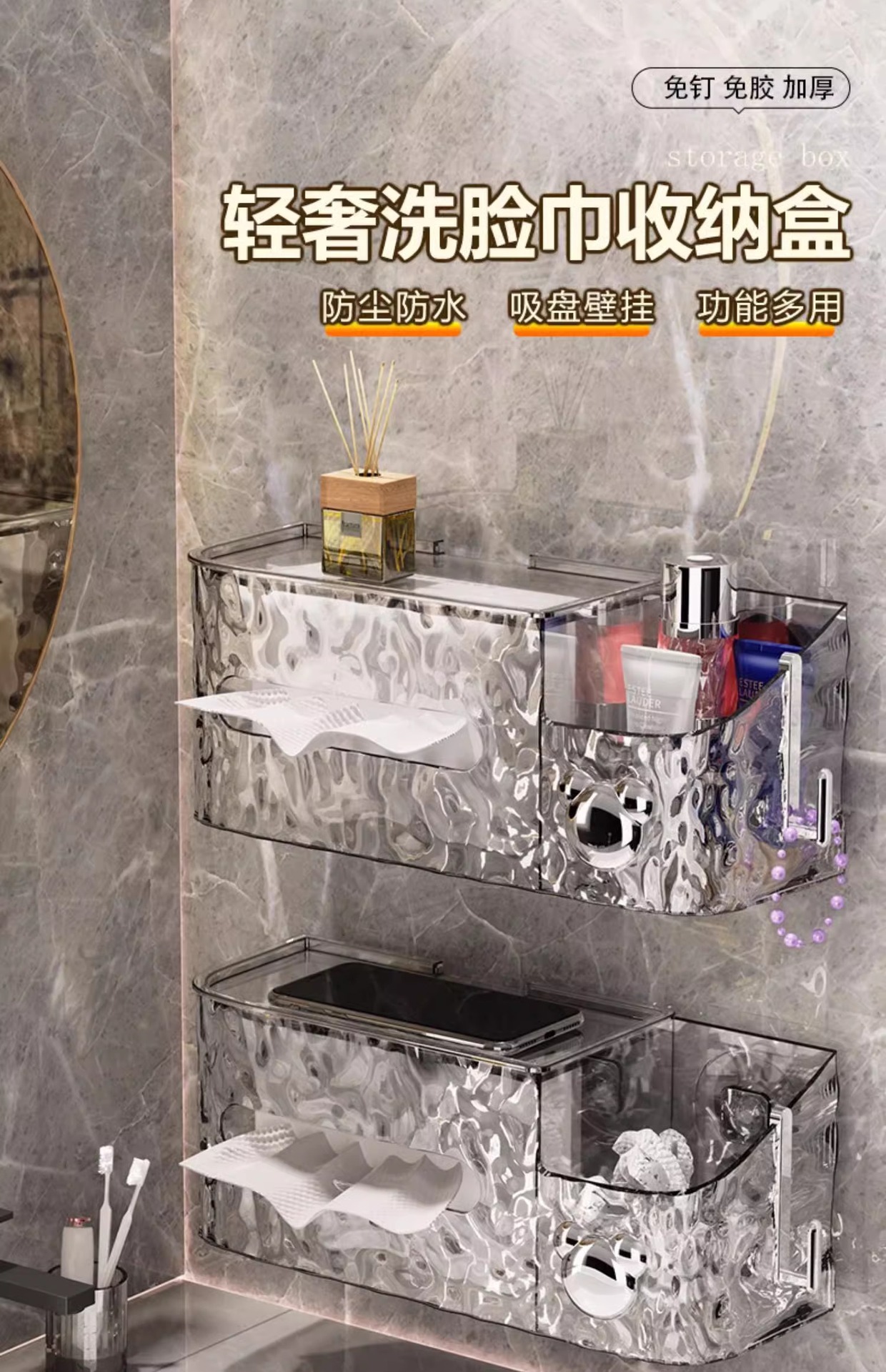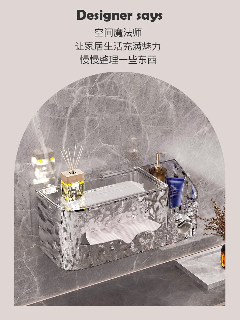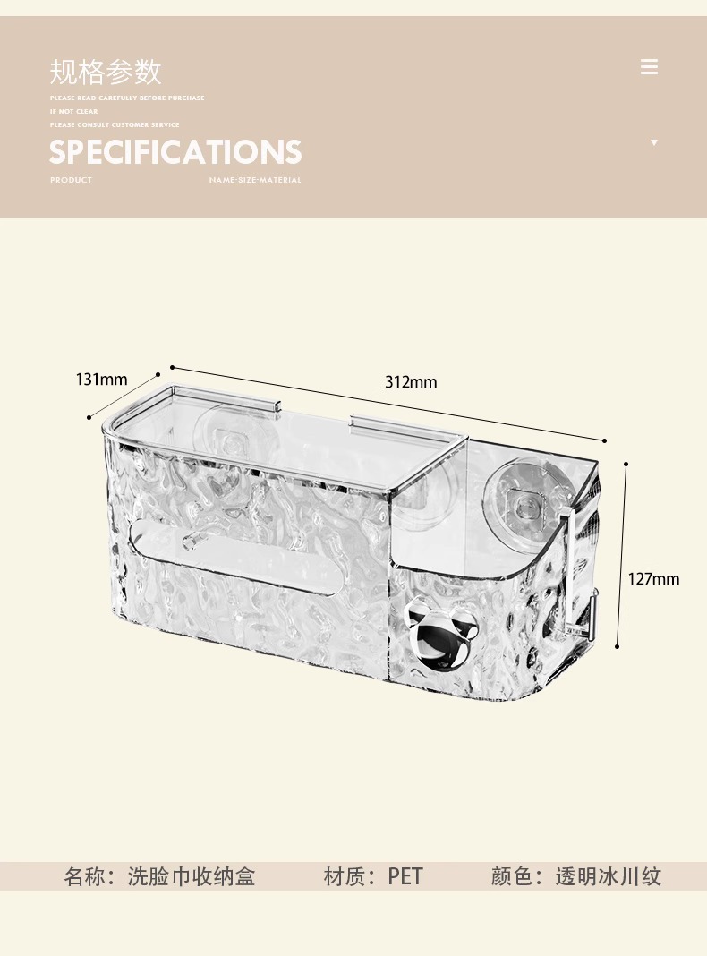 冰川纹洗脸巾收纳盒纸巾盒家用轻奢风卫生间厨房倒挂吸盘收纳盒