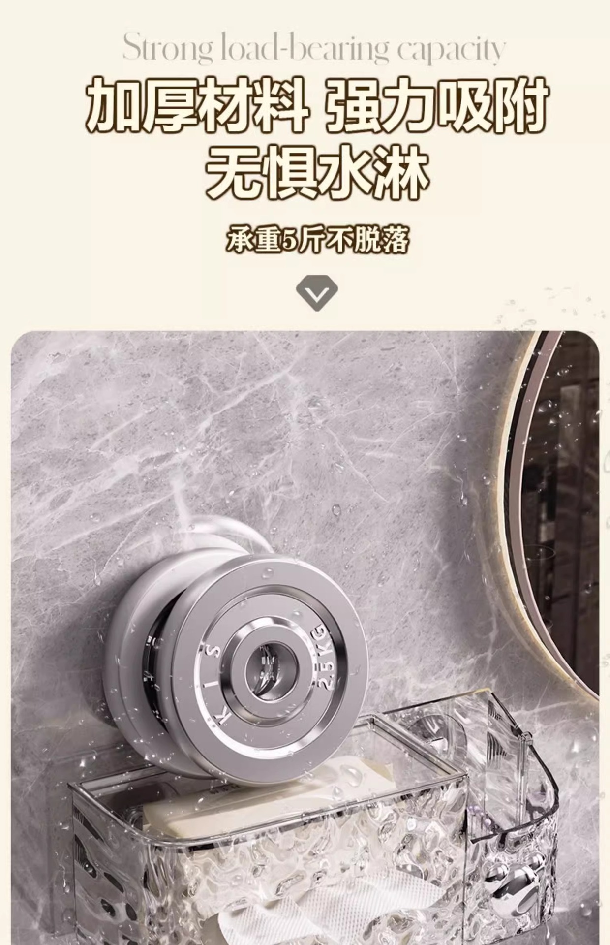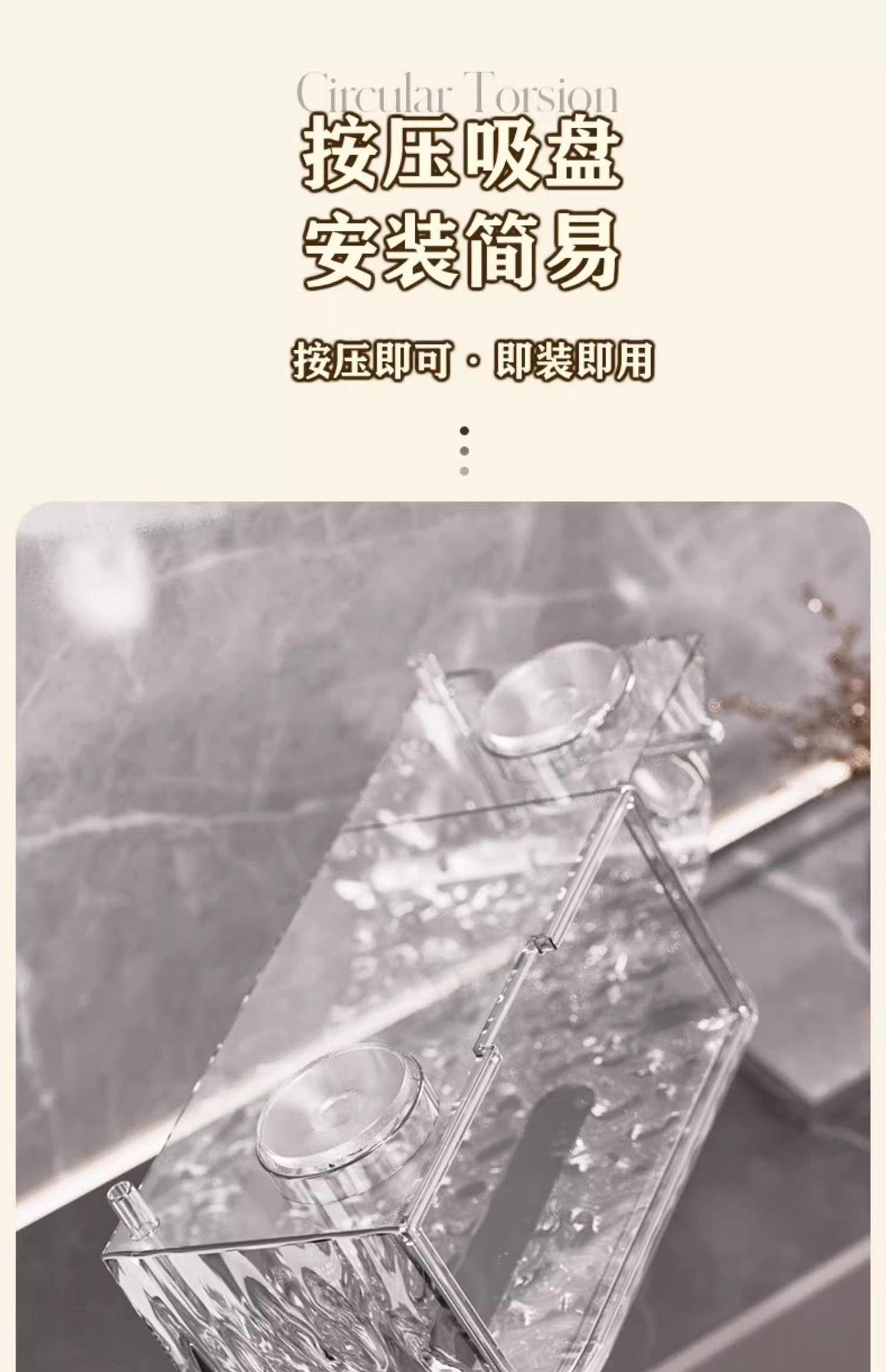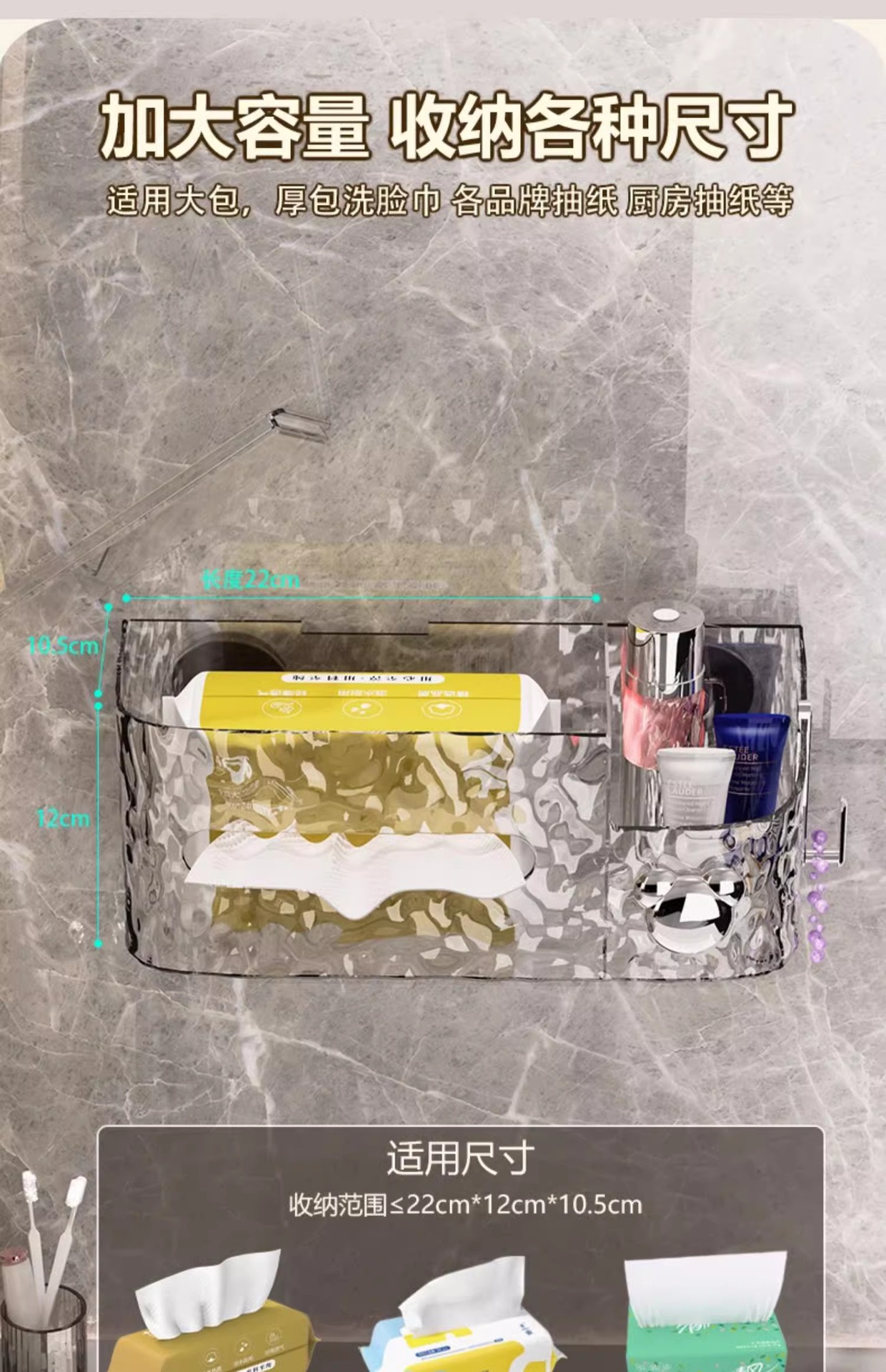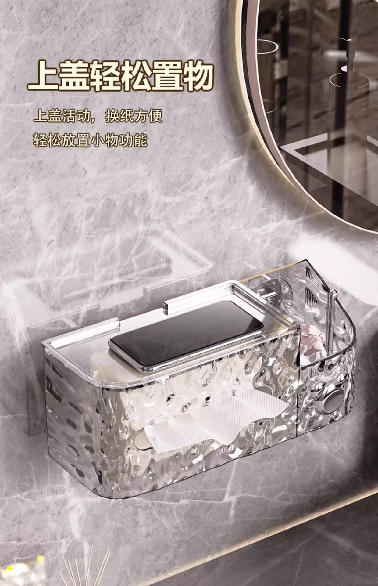 冰川纹洗脸巾收纳盒纸巾盒家用轻奢风卫生间厨房倒挂吸盘收纳盒