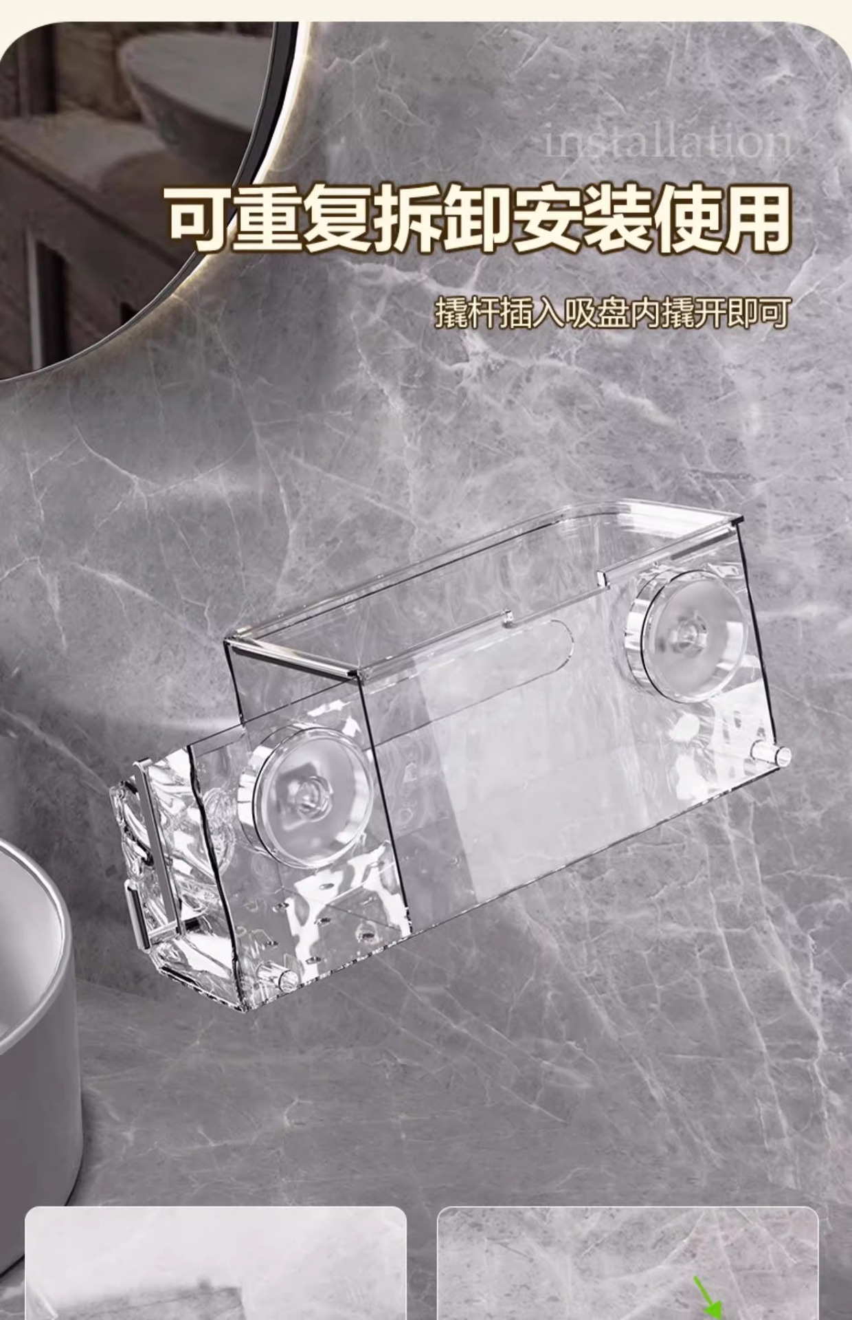 カラー 透明氷河紋吸盤ティッシュケース,透灰氷河紋吸盤ティッシュケース