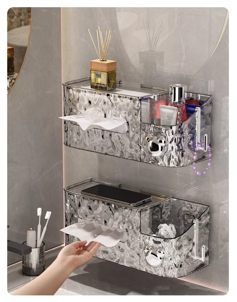 氷河紋吸盤ティッシュケース壁掛け家庭用高級洗顔タオル収納ケース