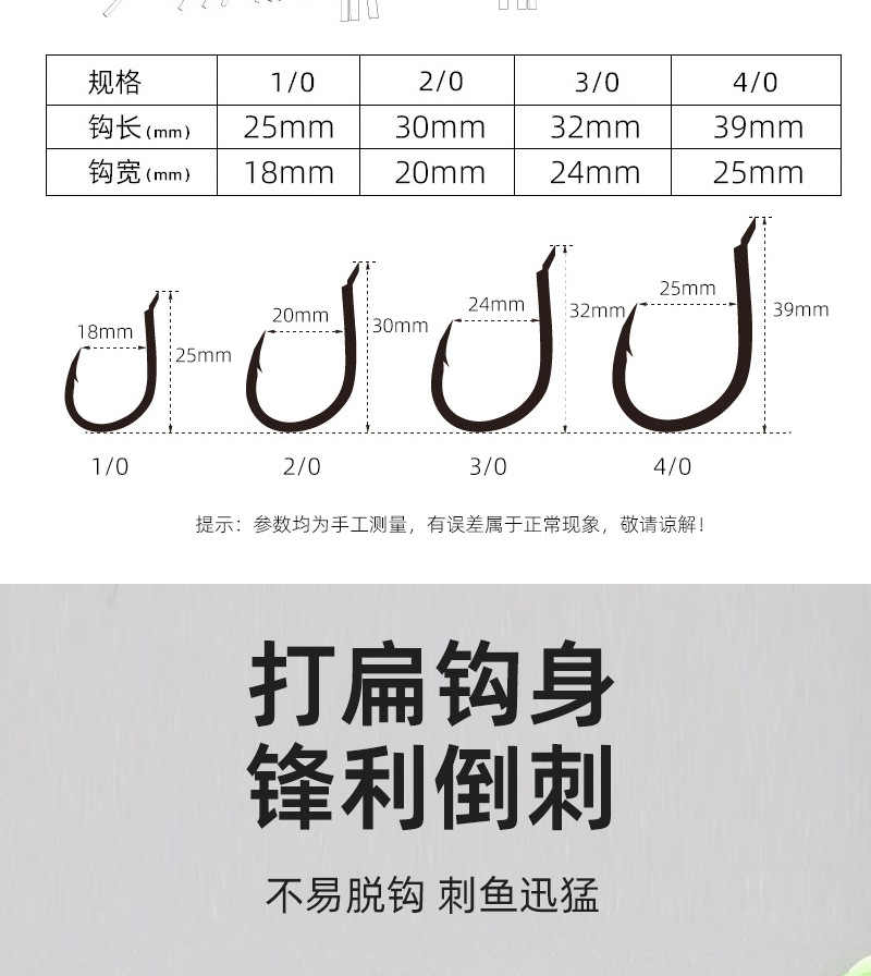 双钩碳钢钓鱼钩锋利多尺寸垂钓专用大物钩海钓淡水钓加固绳结慢摇