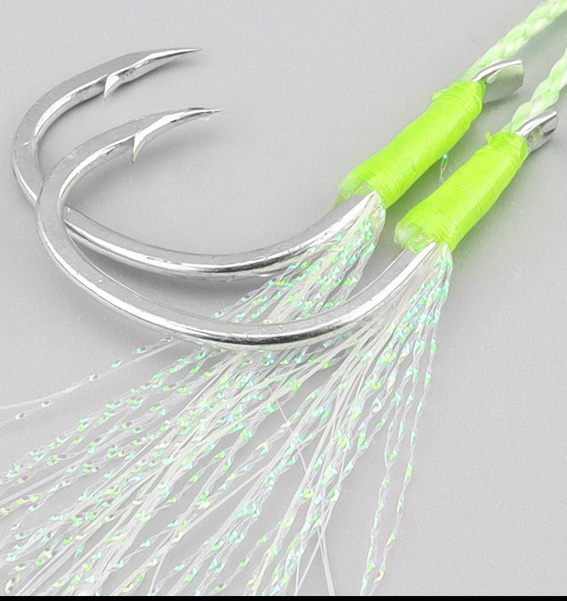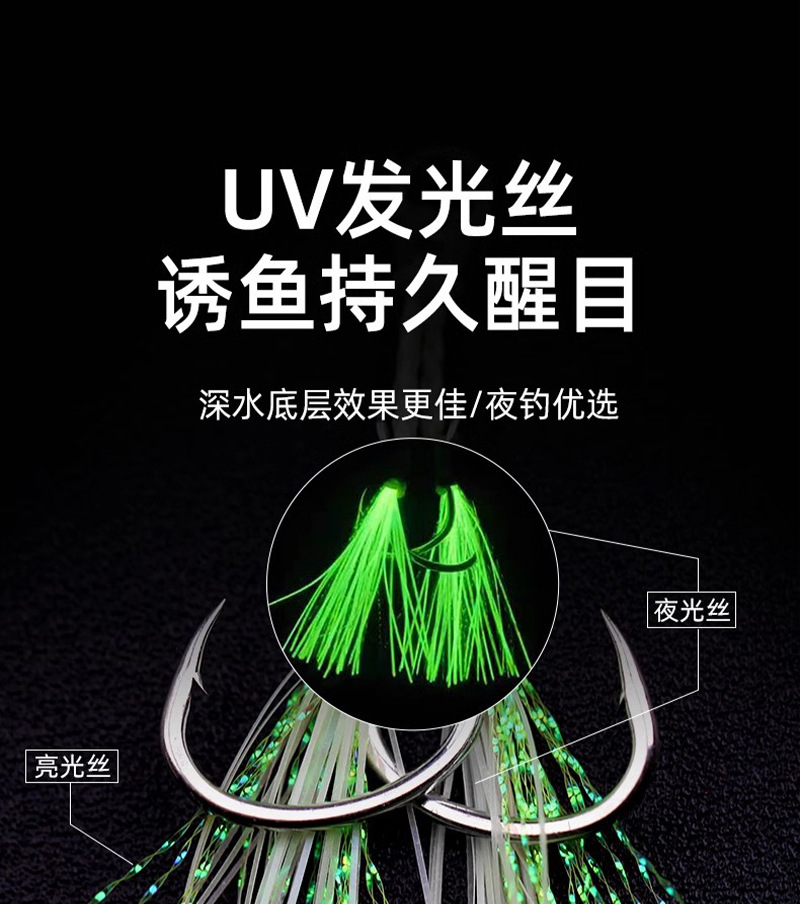 夜光海钓铁板钩 双钩/单钩 船钓钩凯夫拉线亮丝钩奥金铁板钩A48