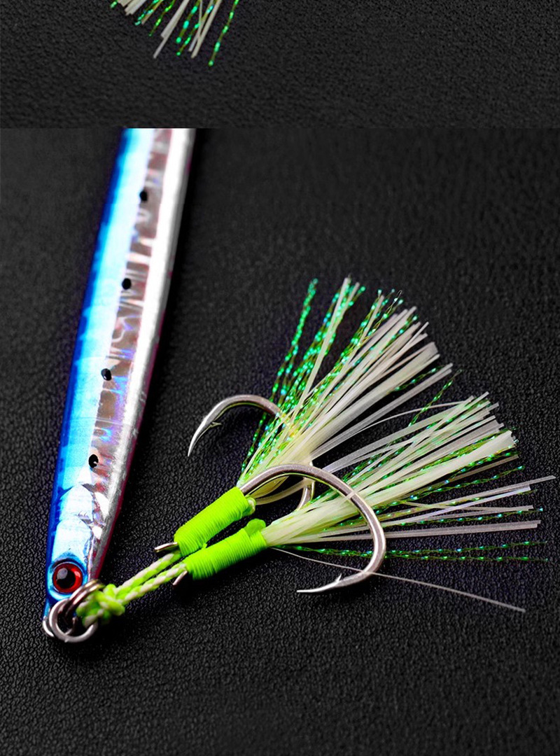 新型ルアーフィッシング用鉄板、シングルフック、ダブルフック、反射魚皮、シームレスシングルリング、魚を引き寄ける効果が良い、海釣りA95