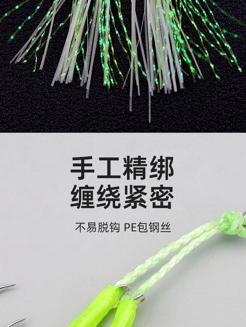 防咬包芯钢丝线铁板双钩无缝圈仿鱼皮钩夜光亮丝船钓海钓马鲛鱼钩