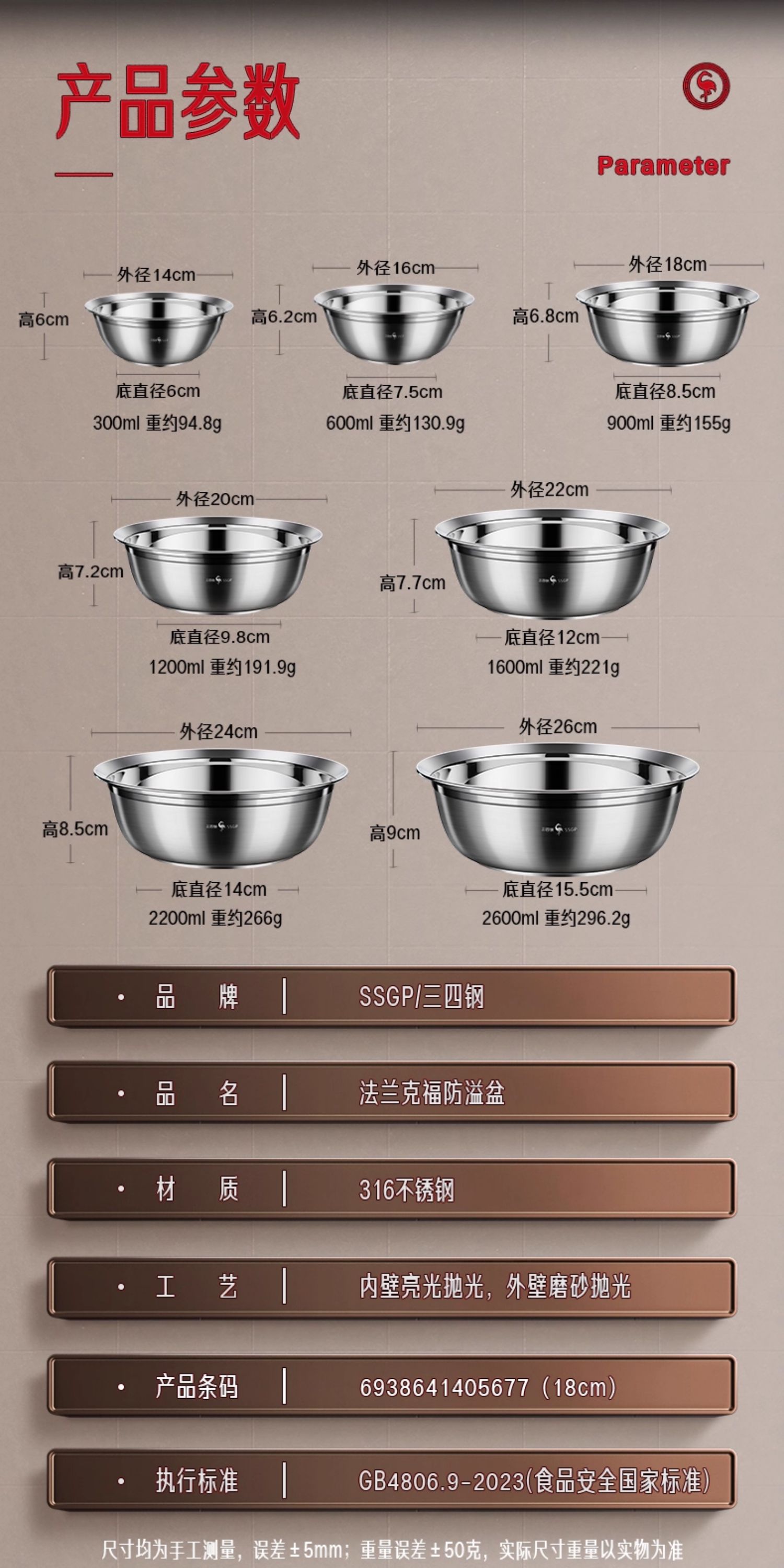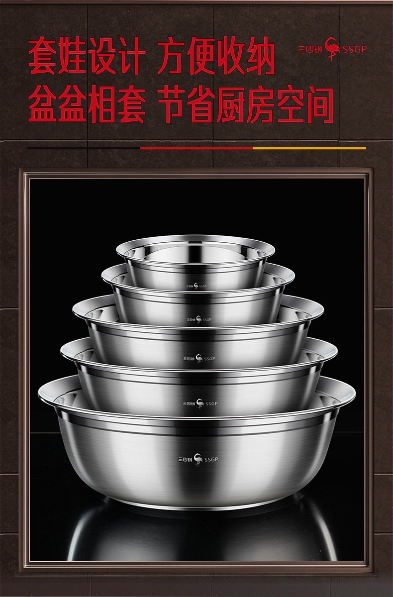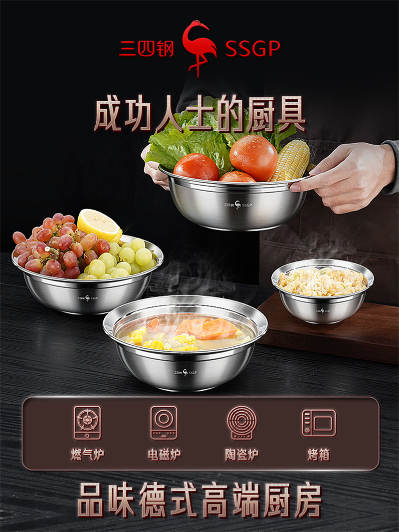 德国食品级不锈钢盆套装洗菜盆家用油厨房和面打蛋料理汤盆