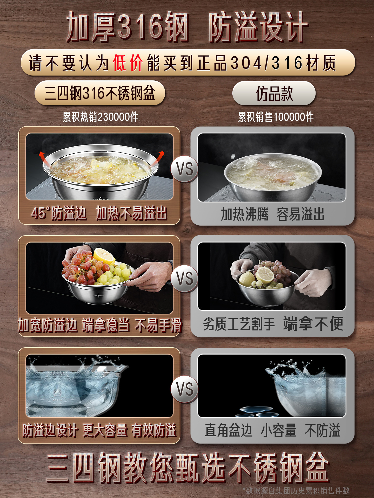 316 ステンレス鋼の洗面器、家庭用スープ洗面器、キッチン洗面器、卵洗面器、深く厚みのある丸い小さな洗面器
