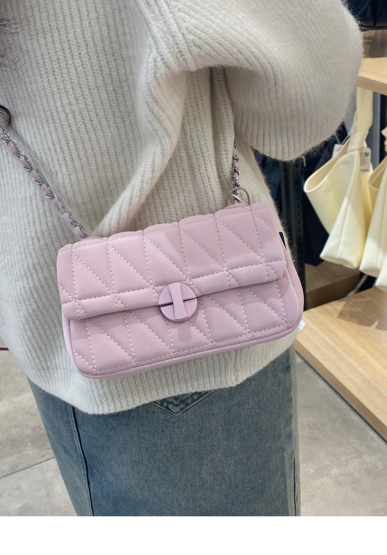 2025年新作 レディースバッグ チェーン付き小さめスクエアバッグ シャネル風 おしゃれで万能な斜めがけバッグ ショルダーバッグ チェーンバッグ