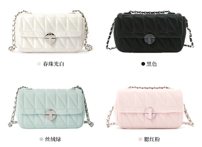 小衆設計ins菱格刺繍糸小方包女2024潮ファッション軟皮鎖片肩斜めショルダーバッグ
