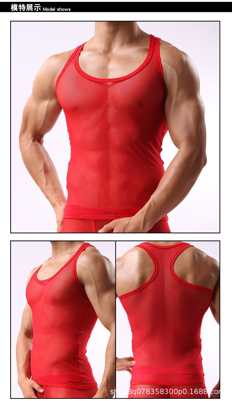 網糸ベストtシャツセクシー男性氷糸通気運動ノースリーブキャミソール夏薄い男性スウェットシャツ